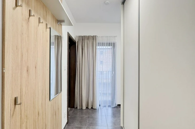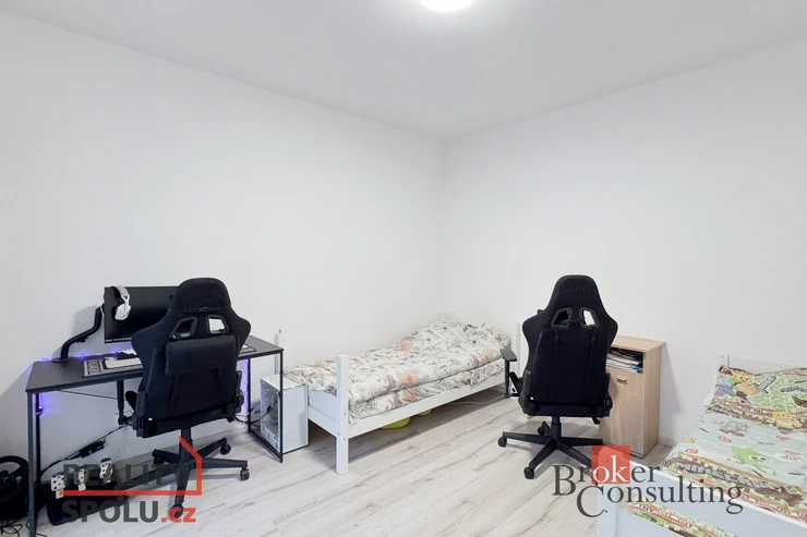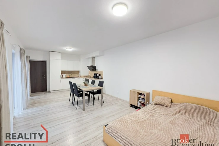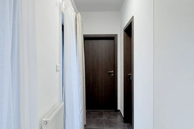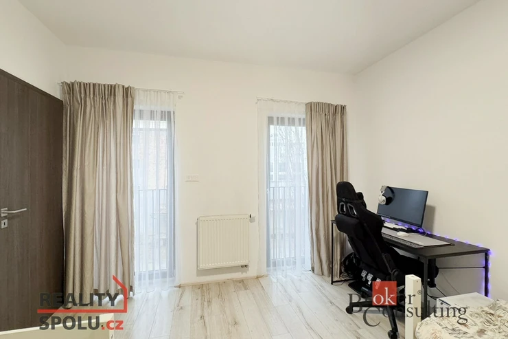 Samostatná ložnice poskytuje klidné a soukromé zázemí, ideální pro odpočinek po náročném dni. Koupelna s vanou a integrovanou toaletou je prakticky řešená a zajišťuje pohodlí pro každodenní život. Celková dispozice bytu je promyšlená a funkční, ideální jednotlivce, pro pár nebo mladou rodinu, která ocení světlo, prostor a praktičnost.