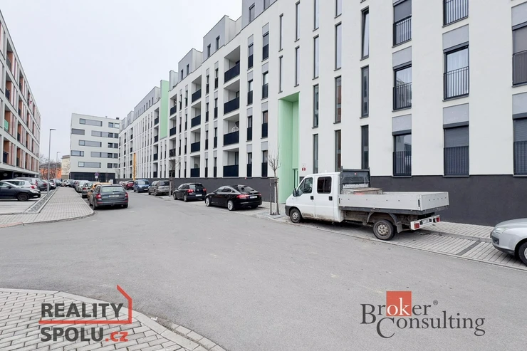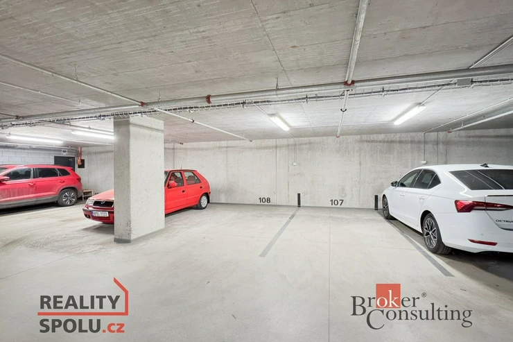 K bytu náleží dvě garážová stání a sklep, které zajišťují pohodlné parkování a dostatek úložného prostoru.