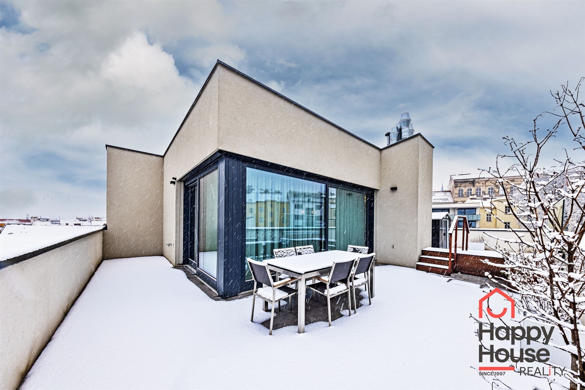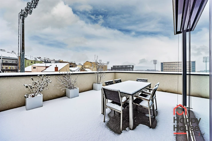 Introducing a bright and spacious penthouse measuring 126 sqm with a three-bedroom layout, featuring a magnificent terrace that lines most of the apartment, sized 110 sqm. This rooftop apartment is part of the Viktoria Apartments project, located near Rieger Gardens in Prague 3, Žižkov.