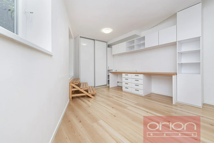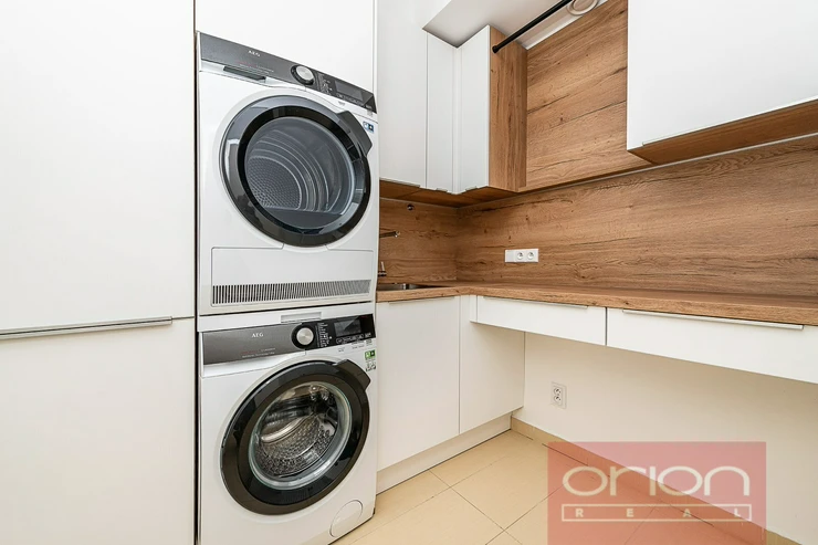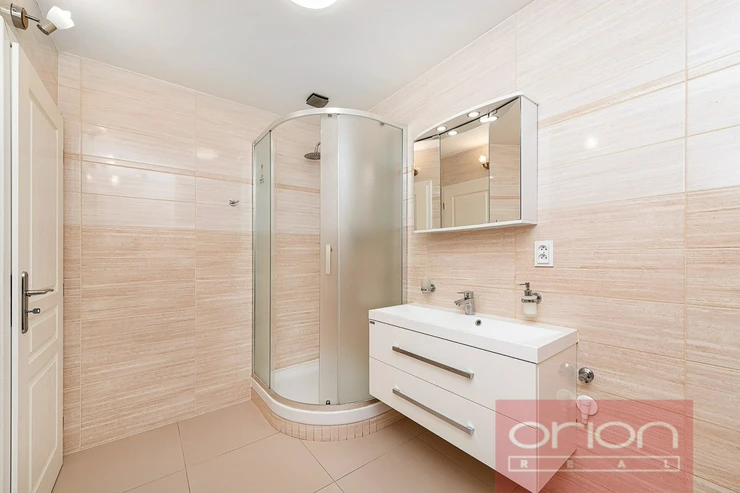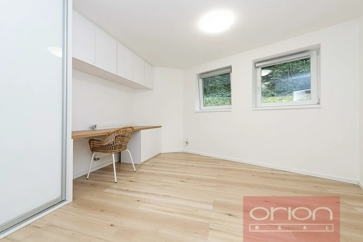 We offer for sale an exceptionally spacious four bedroom apartment with a balcony on the 1st floor of a smaller apartment building with an elevator located in a quiet residential area of Prague 5 - Hřebenka, in close proximity to the Klamovka park. The apartment has a total area of 125.88 sqm and also includes a parking space in the underground garage. There is a plot of land with greenery, which is accessible directly from the apartment. The apartment underwent a high-quality renovation in 2022. The layout of the apartment offers an entrance hall, a spacious hallway with built-in wardrobes, a separate kitchen with a modern kitchen unit with a Dekton worktop and all kitchen appliances, 5 rooms, 1 bathroom with a shower and toilet, 1 bathroom with a bathtub, 2 separate toilets and a utility room with a washing machine, dryer and built-in storage. The apartment features built-in furniture, wardrobes in two bedrooms, high-quality vinyl floors. Heating is provided by a gas boiler in the house. The house is located in a quiet residential area of one of the most desirable Prague locations, Smíchov-Hřebenka, which provides a combination of peace, greenery, all civic amenities and excellent transport accessibility. The bus and tram stop is about 2 minutes walk, then about 10 minutes to the Anděl metro station, where the Nový Smíchov shopping center is located. By car, quick connection to the city ring road and the highway network, Václav Havel Airport is approximately 20 minutes away by car. The apartment is ideal for family living, but also as an investment. It offers generous space, privacy, a high standard of equipment and an excellent location near the city center, but also nature.