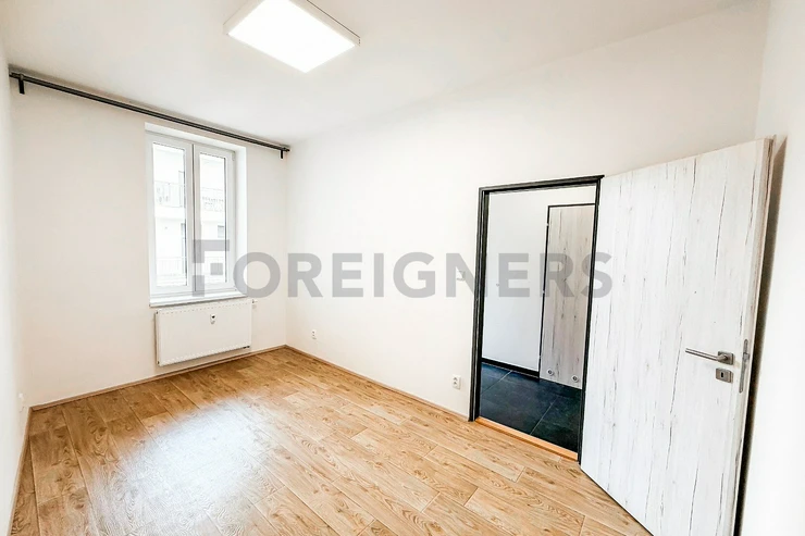 The offered apartment has a 2+kk layout and a total area of 55.84 m². It is located on the 4th floor of a building with an elevator. Thanks to windows facing both north and south, the apartment is pleasantly bright throughout the day.