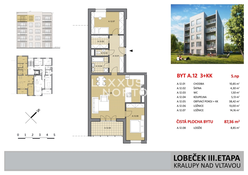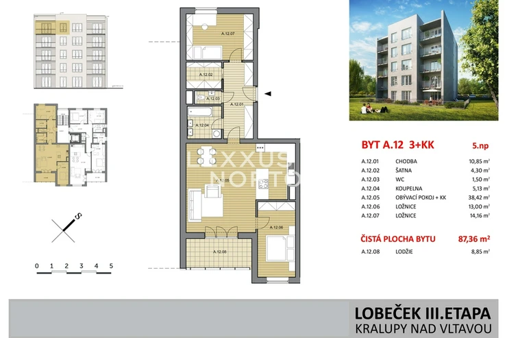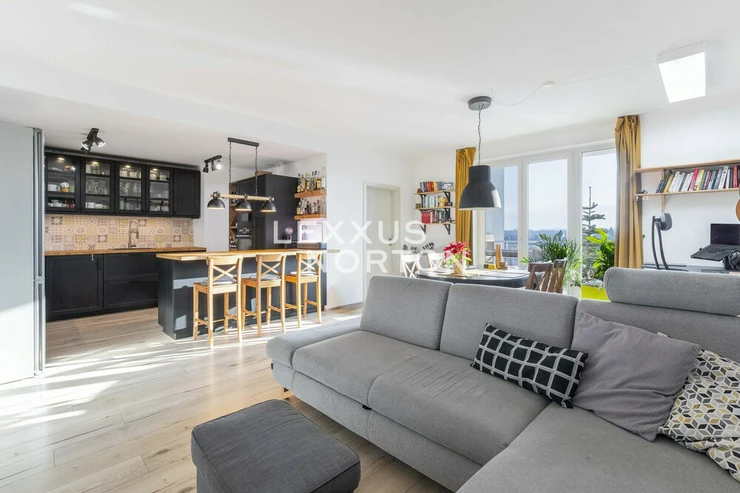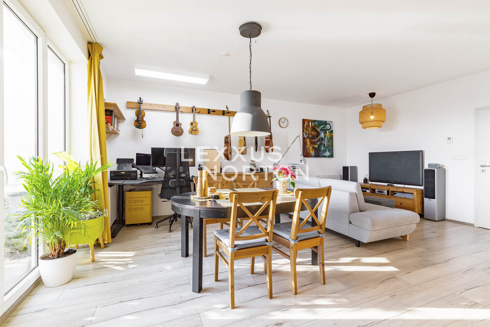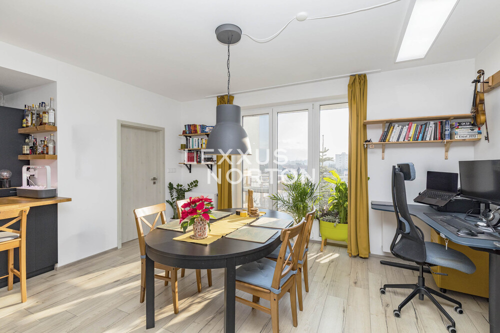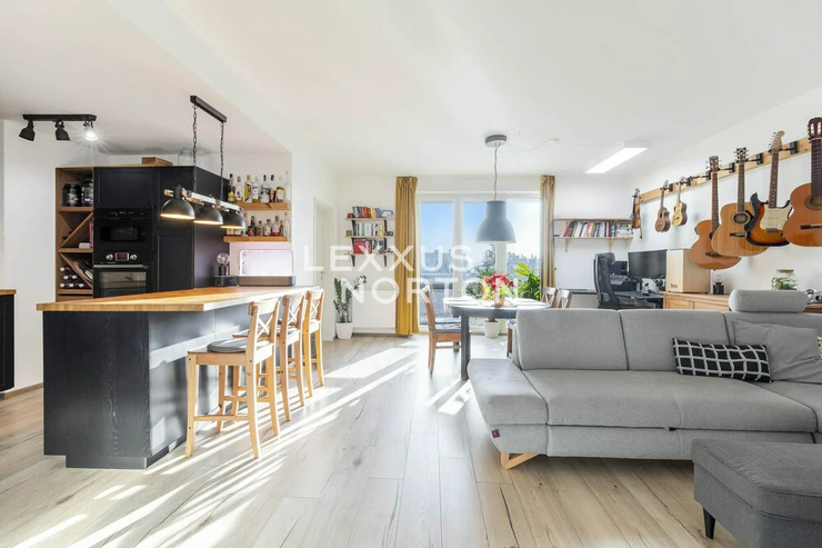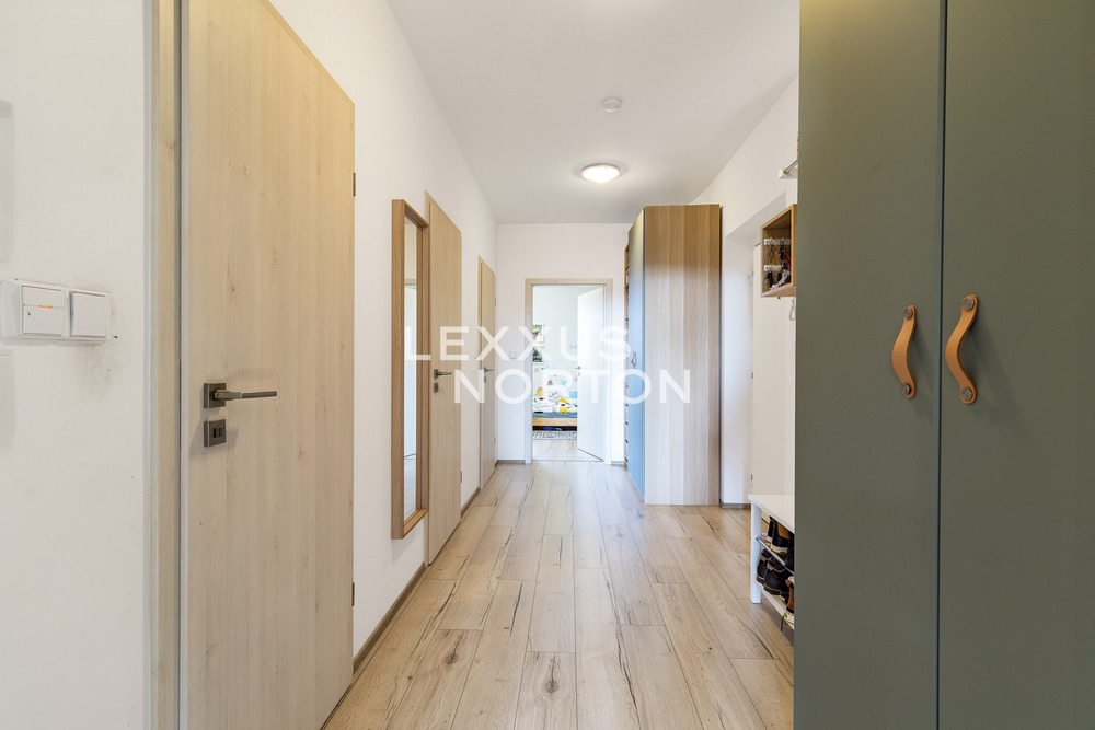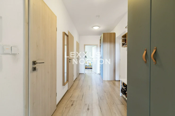 We offer for sale a southeast-facing 2-bedroom apartment with a barrier-free layout. The dominant feature of the apartment is a bright living room (38 sqm) with access to a terrace (9 sqm) and views of the surrounding area, and a really large kitchenette. The apartment also has a bedroom (13 sqm) and a children's room (14 sqm). There is a spacious hallway with maximum use of built-in wardrobes, a bathroom with a bathtub, a storage room, and a separate toilet. The apartment comes with a cellar and an outdoor parking space. Due to its location in Kralupy, it is also suitable for investment and rental.The apartment is in very good condition and is equipped with a kitchen unit including appliances. Floating floors and tiles, interior doors with door frames, plastic windows. The apartment has a practical layout and plenty of storage space. Outdoor parking space and cellar on the ground floor of the building available.The apartment is located in a newly built apartment building near the center of Kralupy, where everything is close at hand. All civic amenities, offices, shops, restaurants, a pharmacy, an ATM, a school and kindergartens, a hockey rink, and a swimming pool nearby. Opportunities for active recreation near the Vltava River.