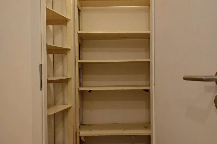 Kuchyňská linka je vyrobena na míru a vybavena vestavěnou myčkou, troubou a plynovou varnou deskou. Praktickým benefitem je samostatná spíž na chodbě, která nabízí dostatek úložného prostoru. Další úložné možnosti zajišťuje vestavěná skříň v ložnici.