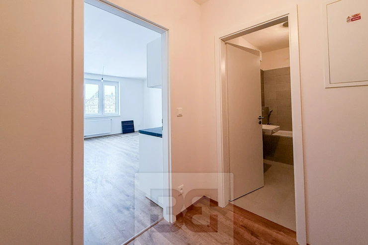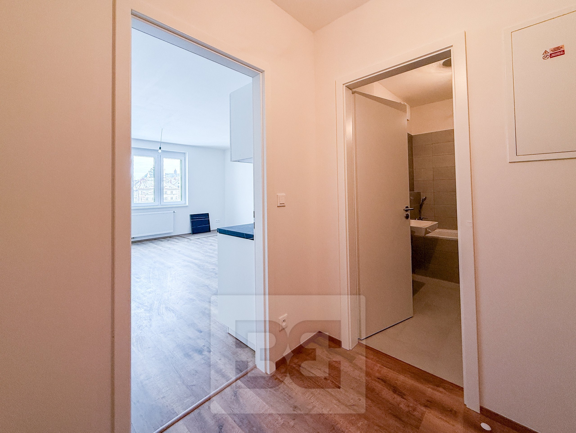 We offer for sale a cooperative studio apartment (1+kk) with a total floor area of 39.6 m² (the stated area includes a cellar storage unit). The apartment is located on the 5th floor of a newly built residential project from 2024, Zahrady Gallas.