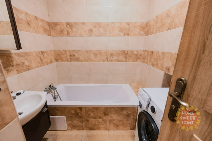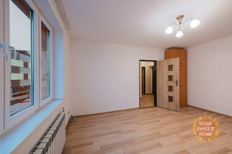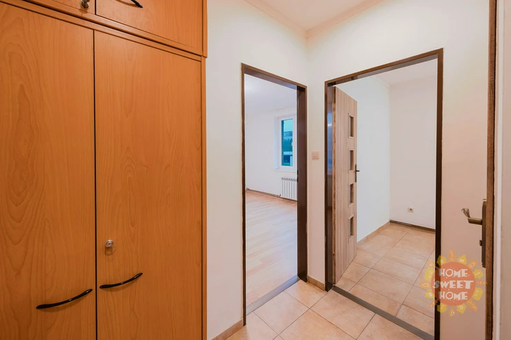 The apartment consists of two rooms, a kitchen with a kitchen unit with a gas stove, oven, fridge with freezer and dishwasher, a bathroom with a bathtub, a separate toilet and a hallway. The apartment was recently revitalized, heating and water heating are provided by a gas boiler, new plastic windows. There are floating laminate floors in the rooms, tiles in the other areas. Thanks to its southern orientation, the apartment is pleasantly bright. Currently, it is possible to purchase a cellar room with the apartment unit.