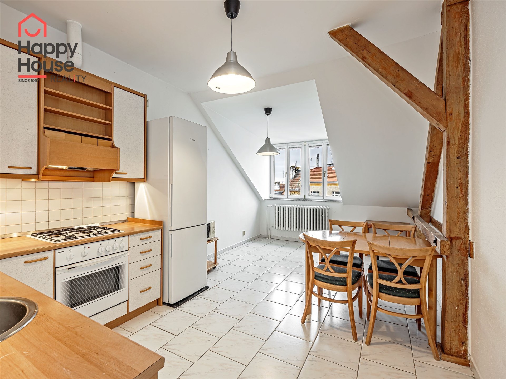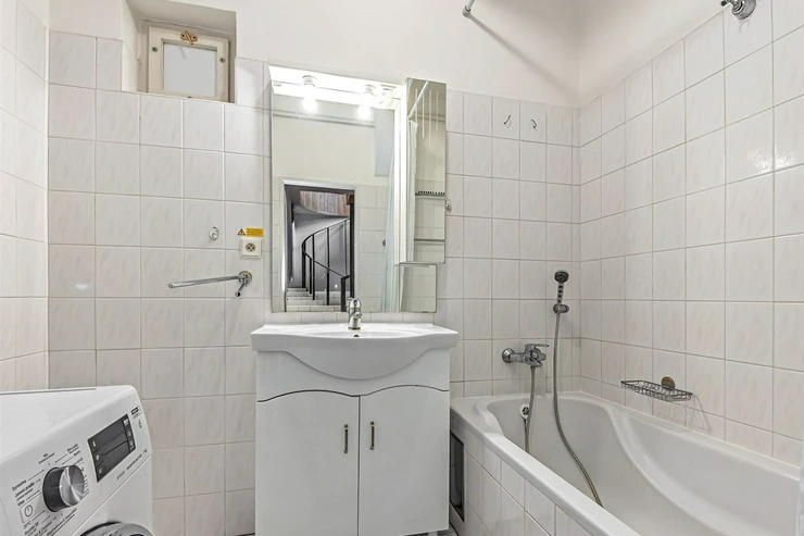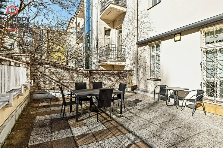 We offer for sale a spacious one-bedroom apartment on the 5th floor of a renovated brick Art Nouveau building with an elevator in Prague 2, Vinohrady. The apartment is unfurnished and offers a spacious entrance hall, living room, kitchen, bedroom, bathroom, separate toilet, and pantry. The kitchen is equipped with kitchen units, a fridge with freezer, ceramic hob, electric and microwave oven, dishwasher, and extractor hood. The bathroom has a shower, washing machine, and gas boiler. The interior is bright and spacious, with high ceilings, offering an ideal combination of comfort and luxury. Parquet floors and tiles. Internet connection, satellite, and cable TV connection are available. There is an option to additionally purchase a 2 sqm cellar and a parking space in the basement of the building. A well-maintained garden with a terrace and seating area is available in the courtyard. Access and surveillance system. The apartment offers comfortable, modern living in a quiet, prestigious residential area known for its elegance and tranquil character.