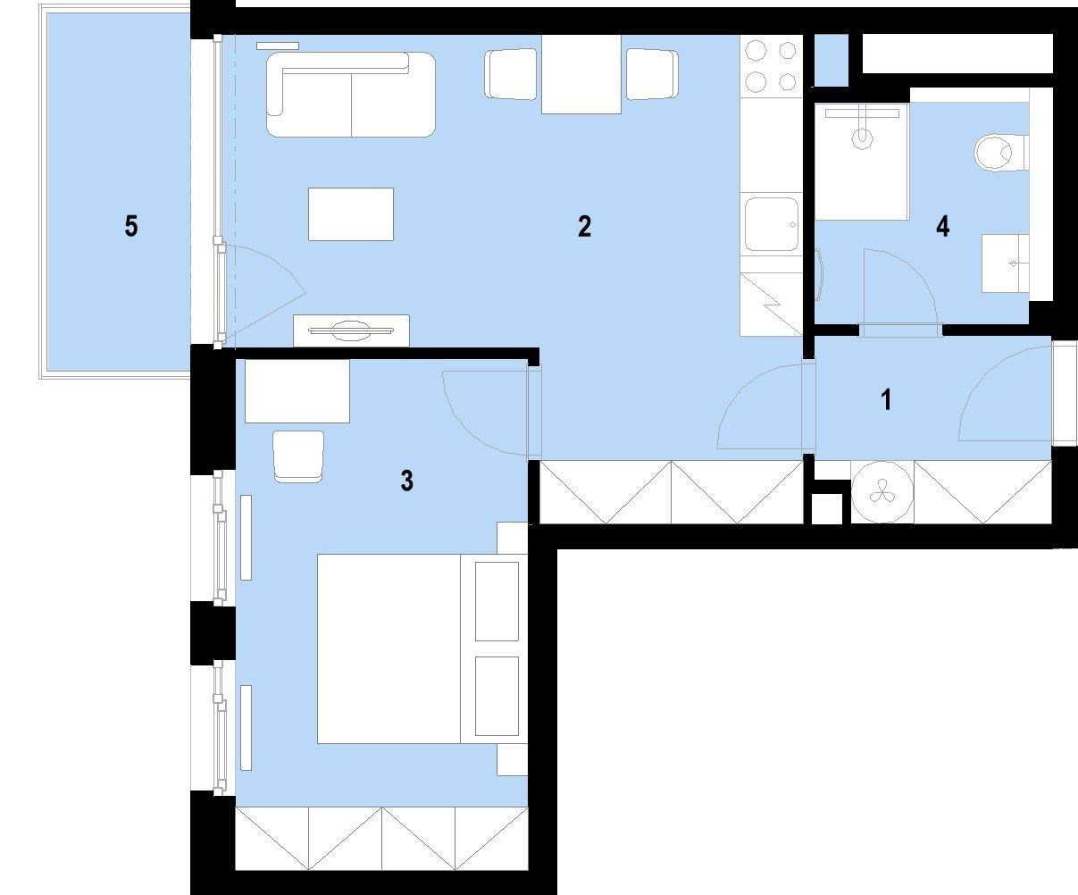 Unit no. 2809 with a one-bedroom layout and a total area of 49.8 m² on the 8 floor will offer you a harmonious space for living, whether you are looking for your own apartment or are a couple starting a joint chapter. The airy living room with a kitchenette freely flows into the bedroom, which is complemented by an elegant bathroom with a shower and toilet. Thanks to its orientation to the W, the apartment enjoys an ample amount of natural light. The unit includes a balcony, perfect for enjoying your morning cup of coffee in the fresh air. A cellar and a parking space must be purchased for each unit. The apartment will be ready to move into immediately with finished floors, a fitted bathroom, and a space for a kitchen unit. Standards include high quality materials, triple-glazed windows, and in selected units, preparation for outdoor shading.