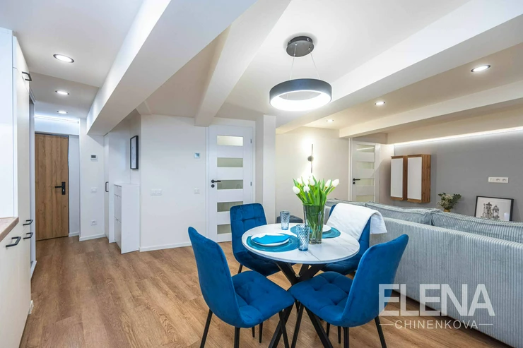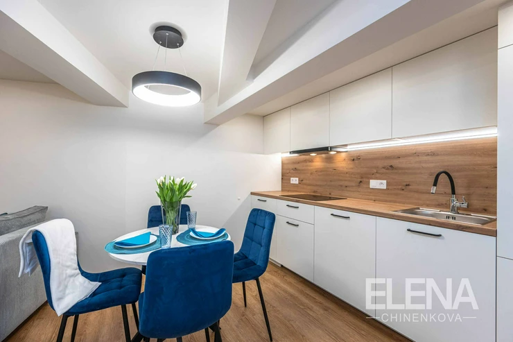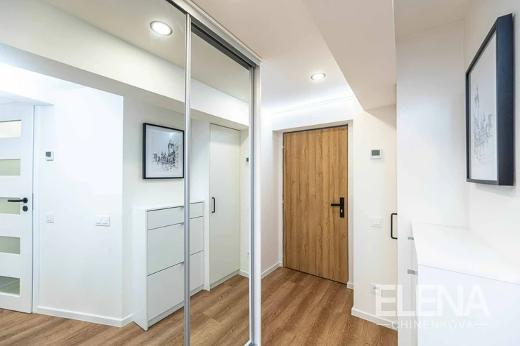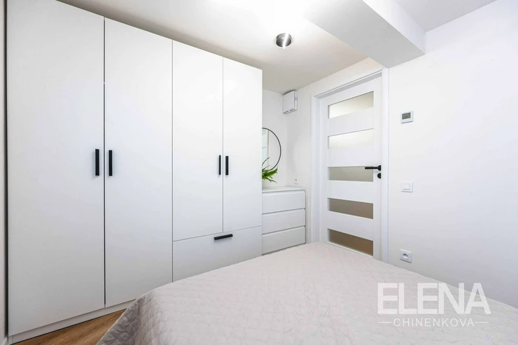 The unit underwent a complete renovation in 2026, including new electrical wiring, water and waste pipes, new flooring, bathroom, kitchen unit, interior doors, lighting and full interior furnishing.
