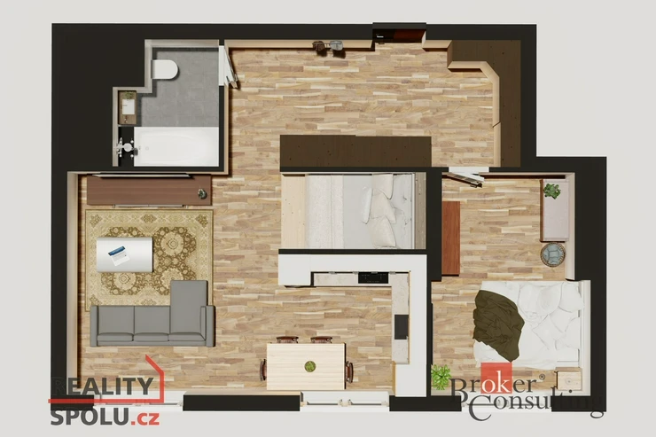 Dispozice bytu nabízí komfortní bydlení s dostatkem prostoru a světla. Okna orientovaná do parku poskytují nejen hezký výhled, ale i klid od ruchu města. Byt je ideální jak pro vlastní bydlení, tak i jako investiční příležitost.