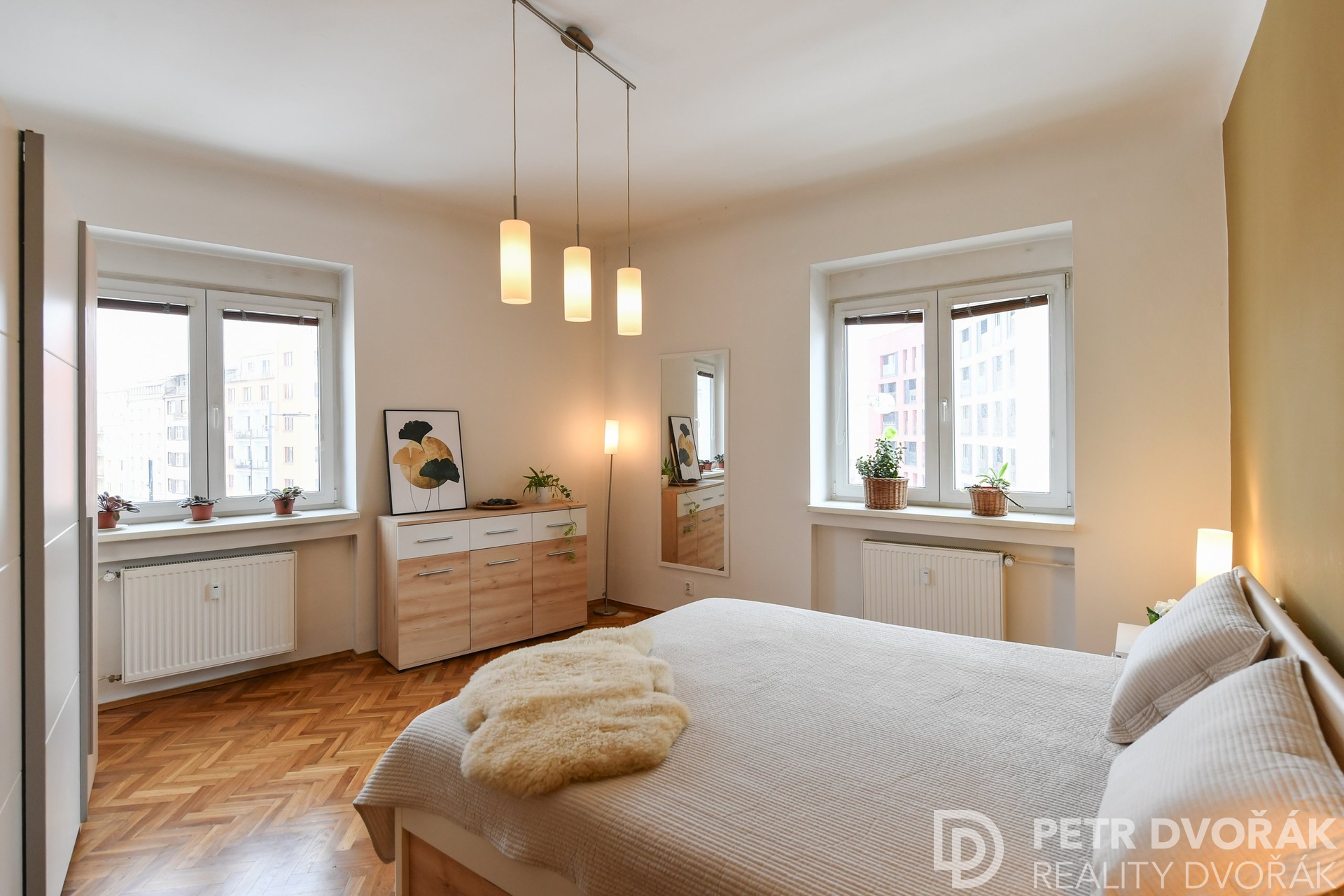 The entrance hallway with new floating flooring offers ample storage space and a practical walk-in closet. An unusual bonus is a private infrared sauna for relaxation in the comfort of your own home. The separate kitchen features modern appliances and a comfortable space for both cooking and everyday dining. The living room impresses with an abundance of natural light and refurbished parquet flooring that lends the interior a warm and timeless character. The bedroom with two windows provides a peaceful retreat with a distant view. Triple-glazed windows throughout the apartment ensure excellent thermal and sound insulation. The bathroom with a bathtub and washing machine is finished with new tiles, and the toilet is separate.