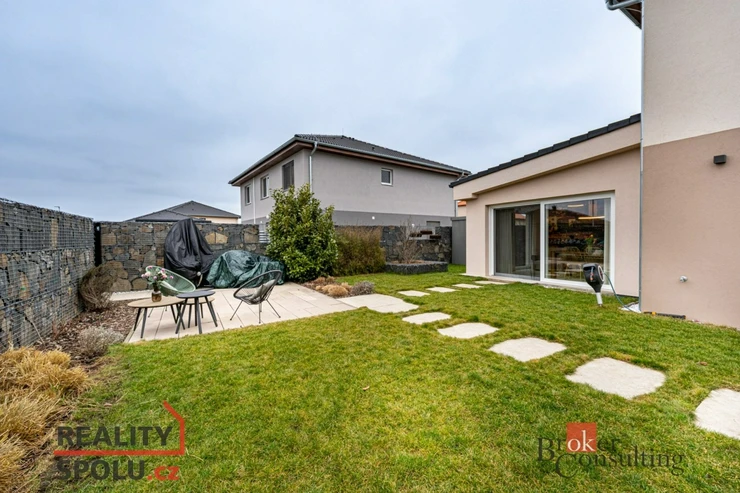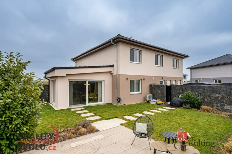 Přesně takový pocit nabízí tento moderní rodinný dům o dispozici 3+1 s podlahovou plochou 93,7 m² a zahradou 179,81 m² v klidné obci Polerady.