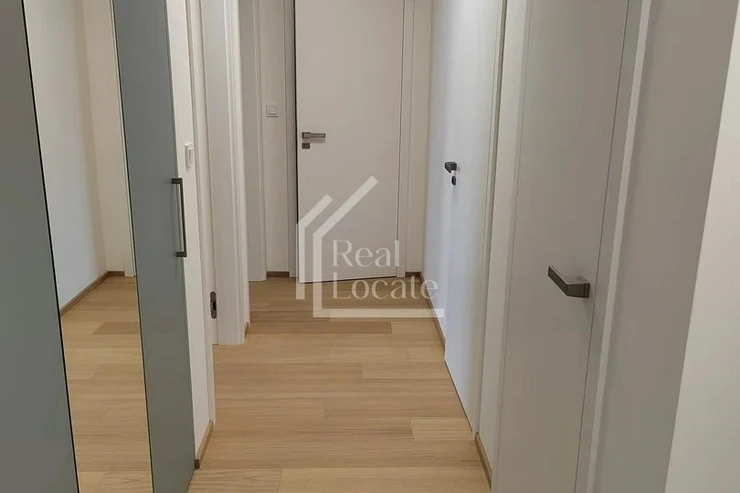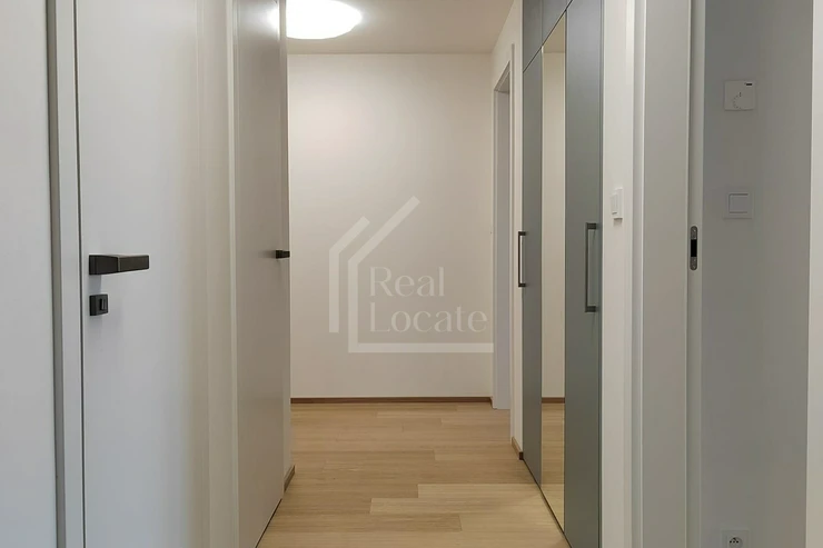 We present a modern 3-bedroom apartment (3+kk) with a floor area of 80 m² and a 9 m² balcony, located in the newly built fourth phase of the popular “Zelené město” residential project in the Prague district of Hrdlořezy. The area is surrounded by greenery – just a few steps away you will find a large park with a pond, a forest, and walking and cycling paths along the Rokytka River, perfect for relaxation or outdoor activities. Thanks to its location, the project offers peaceful living with excellent access to the city centre.