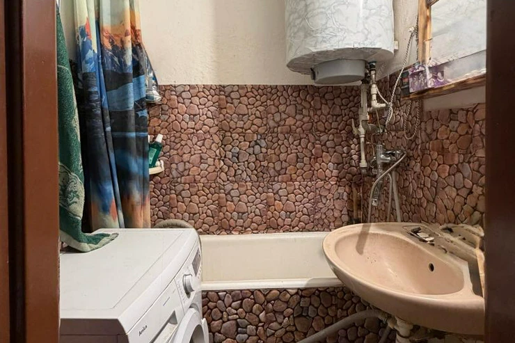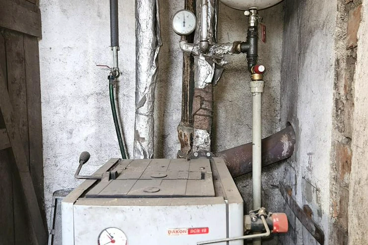 The apartment is heated by a wood or coal boiler. In the living room, there is