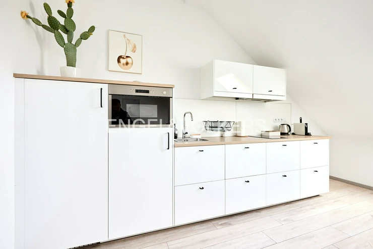 The apartment also includes a cellar cubicle, and the building is equipped with an elevator. The overall character of the apartment combines modern design, the airiness of a loft, and an exceptional atmosphere with beautiful views. An ideal choice for demanding clients or as a premium investment.