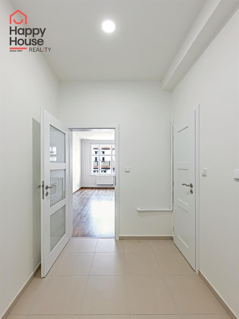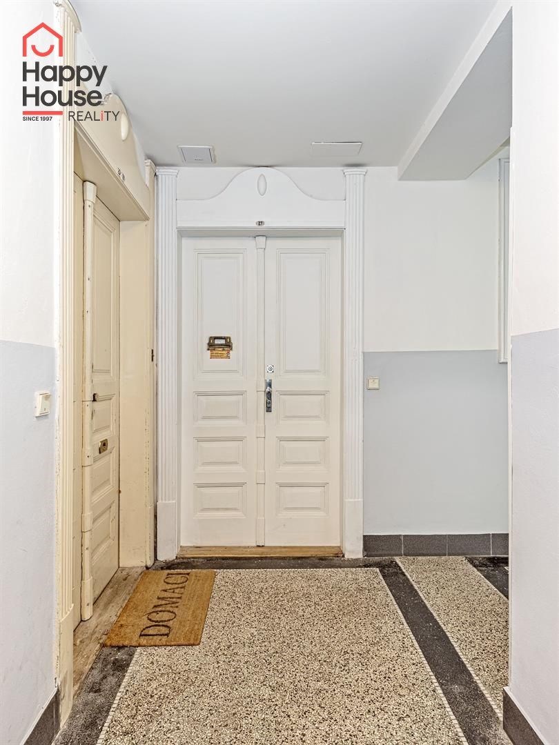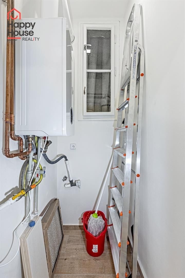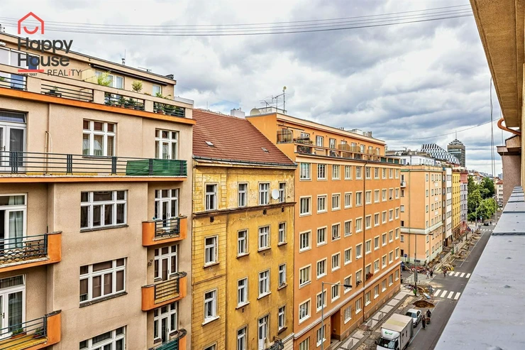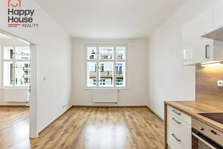 We exclusively offer for sale a bright, completely renovated one-bedroom apartment with a living area of 49.2 sqm on the 5th floor of a brick tenement house from the 1920s with an elevator, located in the popular area of Prague 3, Vinohrady. The apartment unit underwent a complete renovation in 2020 (new electrical and plumbing installations, plaster, floors, etc.). The interior of the apartment offers a larger entrance hall after entering, a bathroom, a separate toilet, and a utility room. Next, you enter the living room with a kitchenette, and from this room into the bedroom. The utility room contains a gas boiler and a washing machine connection. Laminated floors and tiles. The building has a new roof, new risers, and an elevator. Construction of cellar cubicles is planned in the house.