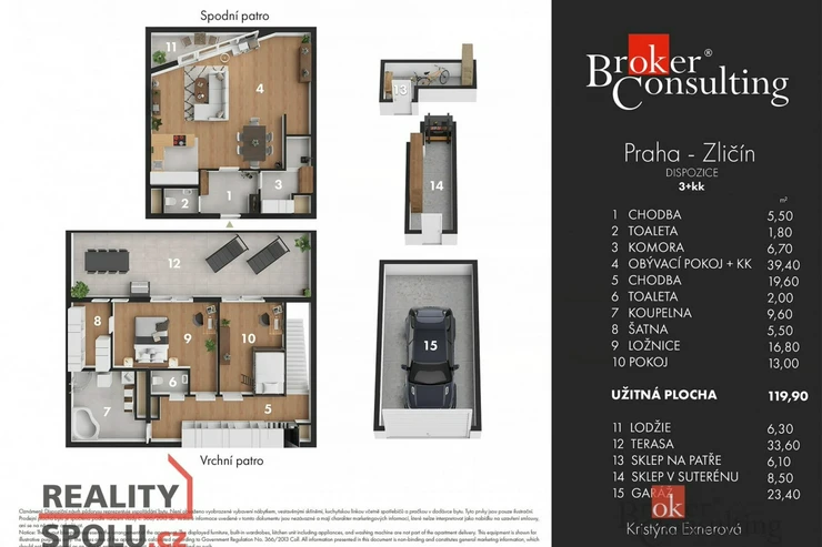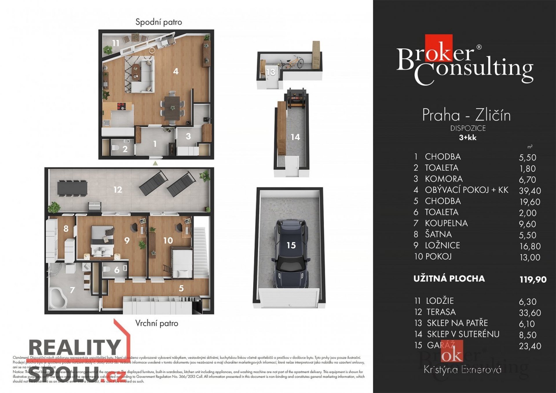 Spacious Two-Storey 3+kk Apartment (120 m²) with Terrace, Loggia, and Garage – Prague 5 – Zličín