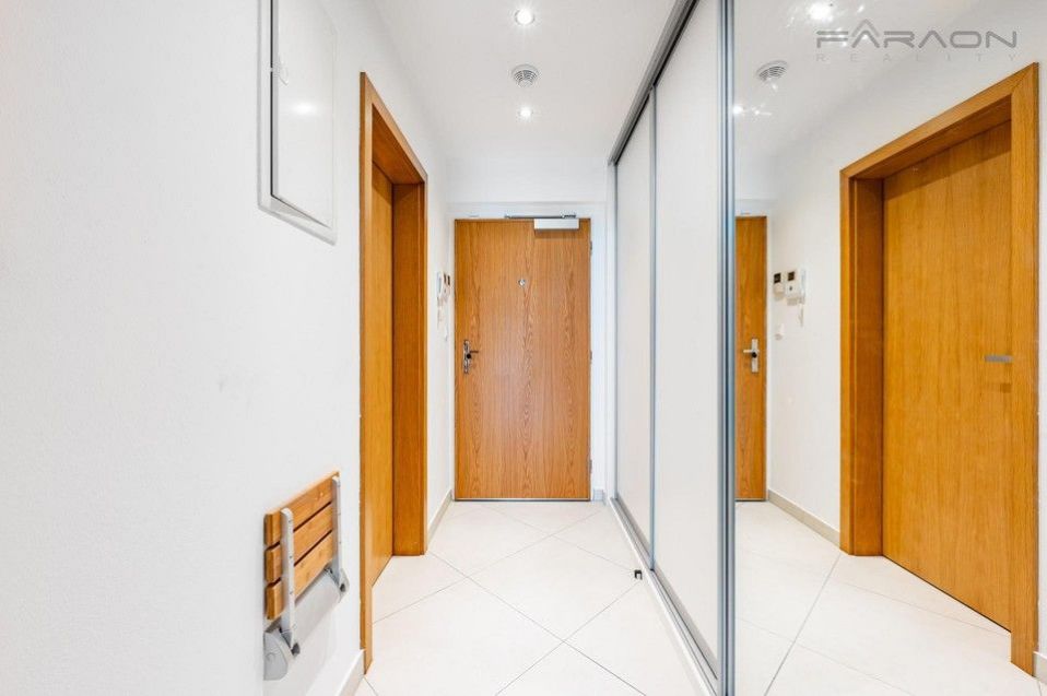 Supervision of safety and order is ensured by a non-stop reception with a camera system. Common areas are equipped with above-standard elevators, lighting with a motion sensor or luxurious large-format tiles and tiles. The apartment has an electronic security device with a touch control. Driveways, entrances and common areas have chip access, the apartment has a smoke detector. The entrance door to the apartment is secured by a domodoorbell with camera.