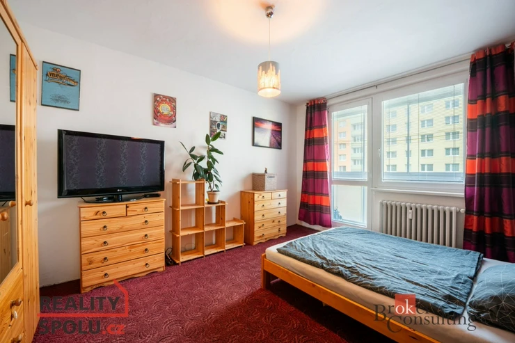 Nachází se ve 3. podlaží panelového domu s výtahem. Dispozice bytu je funkční a praktická. Z předsíně, která nabízí mnoho úložného prostoru, je vstup do koupelny po pravé straně, do ložnice po levé straně, a po pár krocích se ocitnete přímo v kuchyni s jídelním stolem. Kuchyň nabízí dostatek úložného prostoru i pracovní plochy, útulná ložnice poskytuje klidné zázemí pro odpočinek. Právě odtud je přístup na lodžii – místo pro ranní kávu, tichý večer nebo chvíli jen pro sebe. Byt je ve velmi dobrém stavu a je připravený k okamžitému nastěhování, a až na pár věcí se prodává z většiny vybavený. K bytu náleží také sklepní kóje.