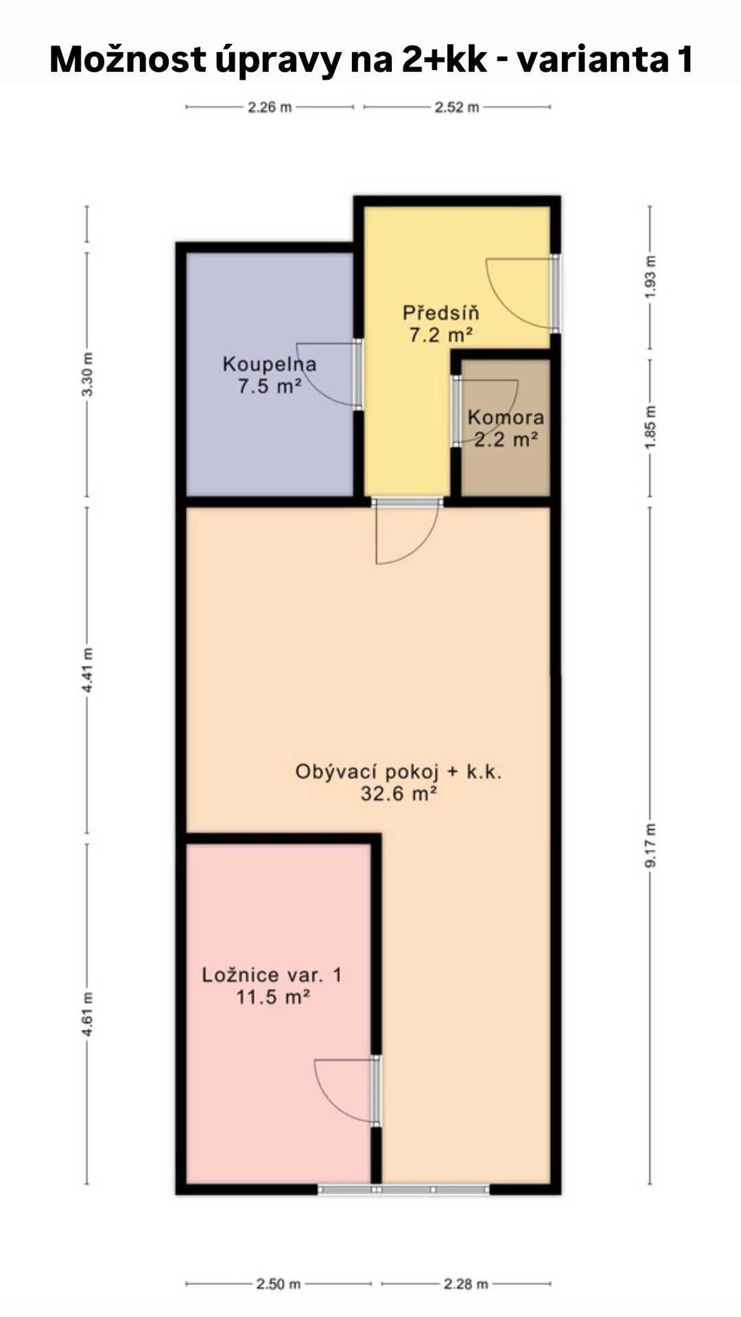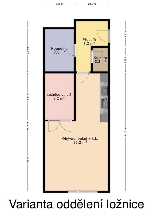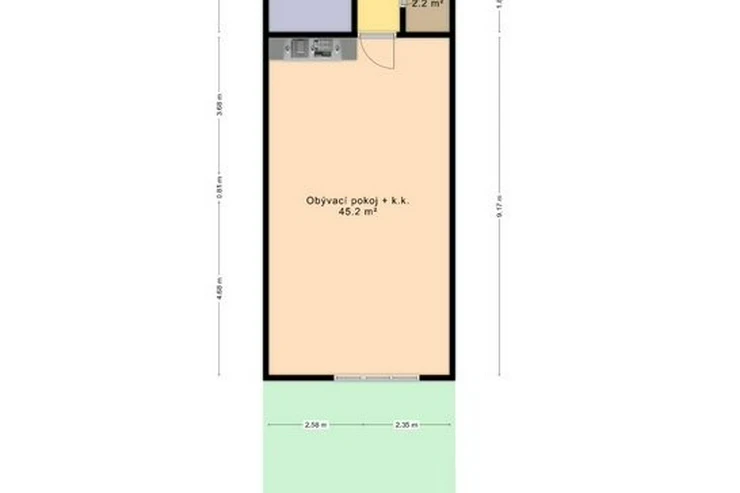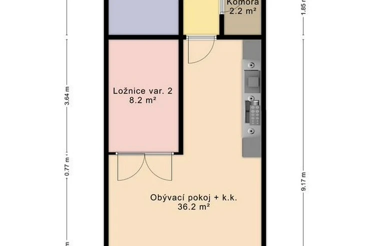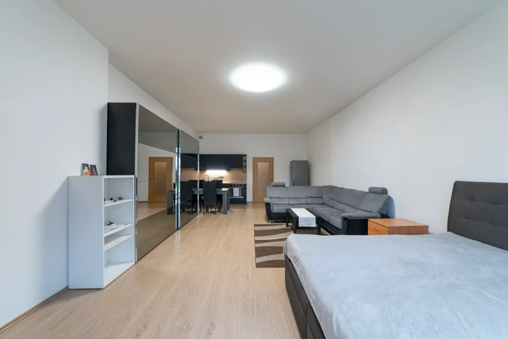 Byt je ideální jako první samostatné bydlení nebo jako zajímavá investiční příležitost k pronájmu. V případě zájmu lze na této ploše snadno vytvořit dispozici 2+kk; v galerii jsou pro inspiraci znázorněny dvě možnosti oddělení ložnice.