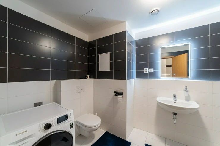 Kuchyň je moderní a plně vybavená spotřebiči (varná deska, trouba, digestoř, lednice). Součástí vybavení je také pračka. Majitel je navíc ochoten přenechat kupujícímu veškerý nábytek zdarma, byt je tedy připraven k okamžitému užívání bez nutnosti dalších investic.