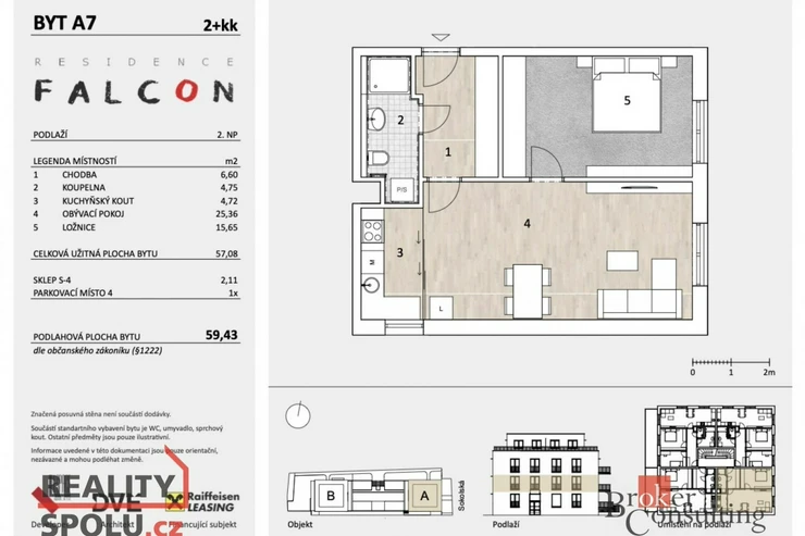 Exkluzivně nabízíme k prodeji moderní byt o dispozici 2+kk a podlahové ploše 59,43 m², který je situován ve 2.NP.