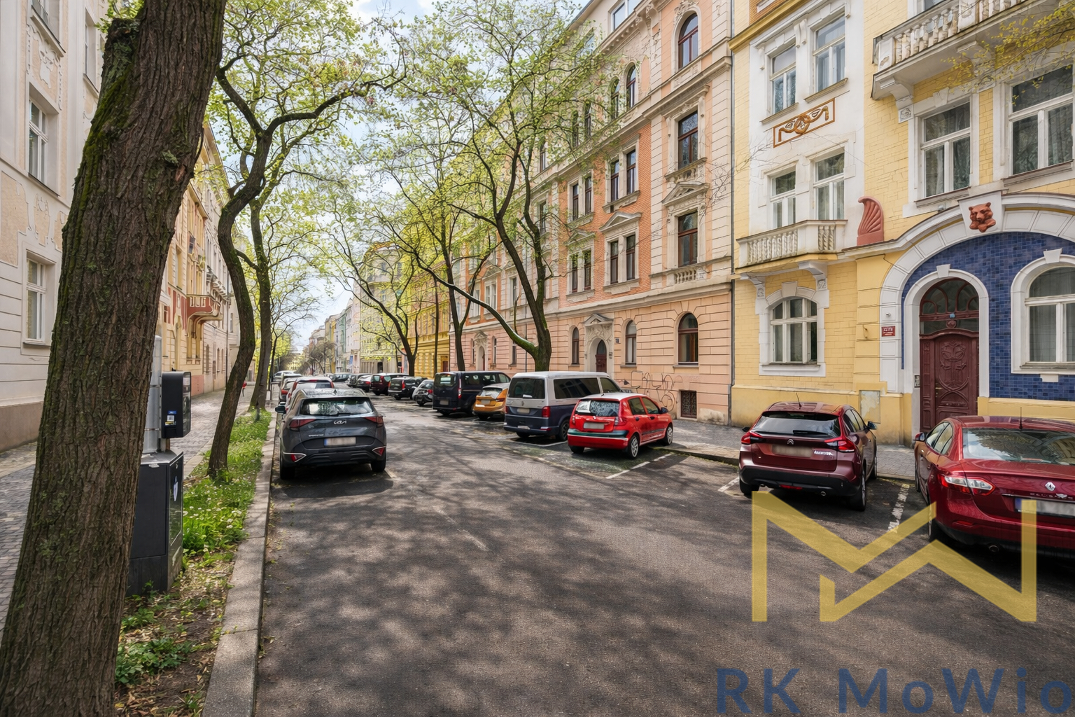 Moravská Street is one of the most impressive parts of Vinohrady. It is a wide, airy street lined with mature trees, characterized by representative Art Nouveau buildings with richly decorated façades. The atmosphere of this part of Prague 2 maintains a calm residential character, despite being just a few steps from the vibrant city centre. An exceptional benefit is the view from the apartment windows towards Jiřího z Poděbrad Square and its distinctive towers, adding a unique Prague context to the living experience.