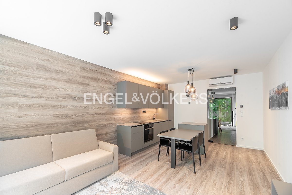 This modern, fully equipped studio apartment (1+kt) in the Staropramenná Residence offers comfortable living with pleasant views in a quiet environment, yet in the centre of Smíchov with all amenities.