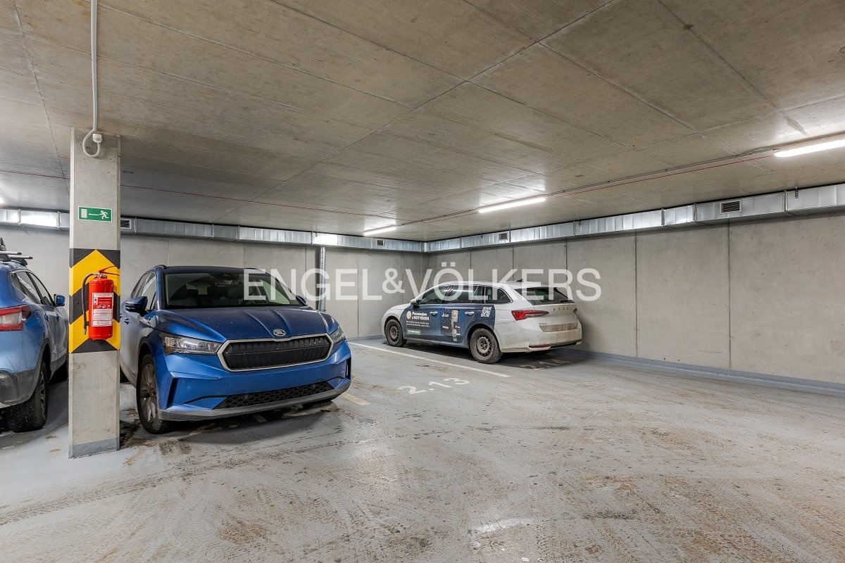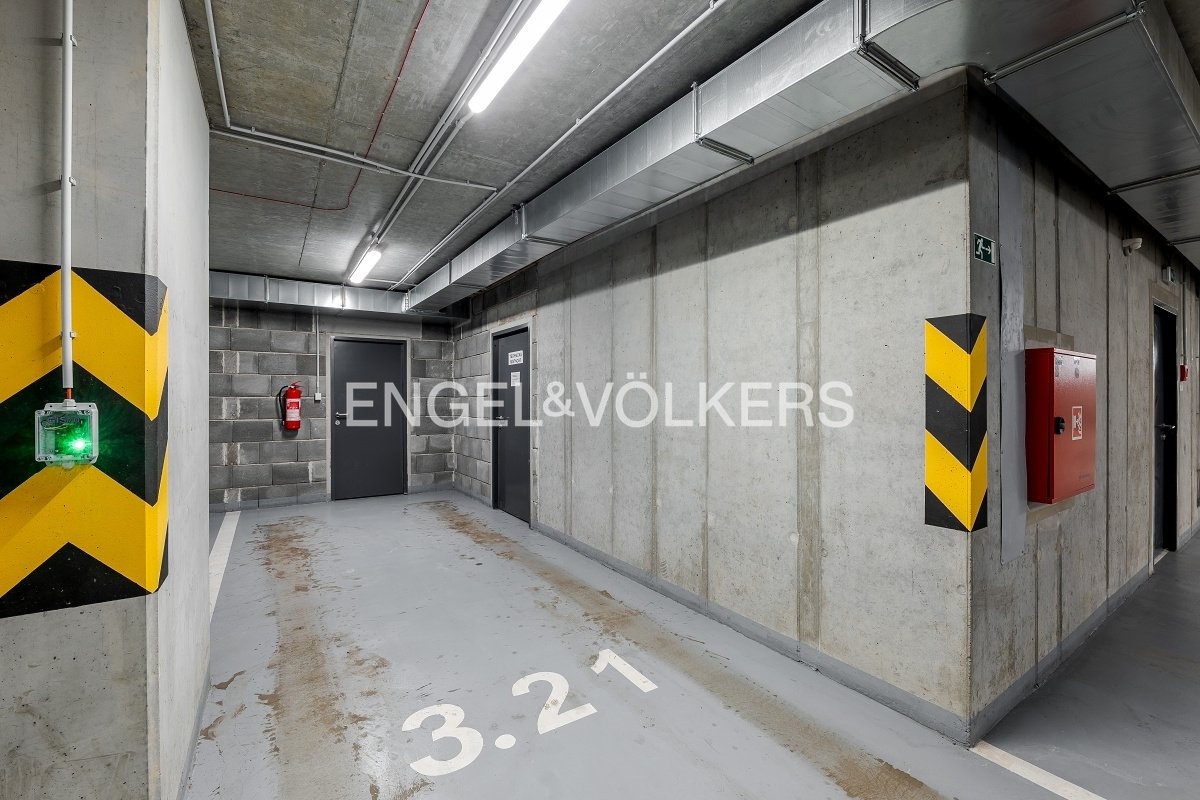 Total monthly operating costs for the apartment are approximately 5,000 CZK. The unit includes a storage room on the same floor (2 sqm), a cellar (2 sqm), and two spacious garage spaces in the underground garage, providing convenient parking.