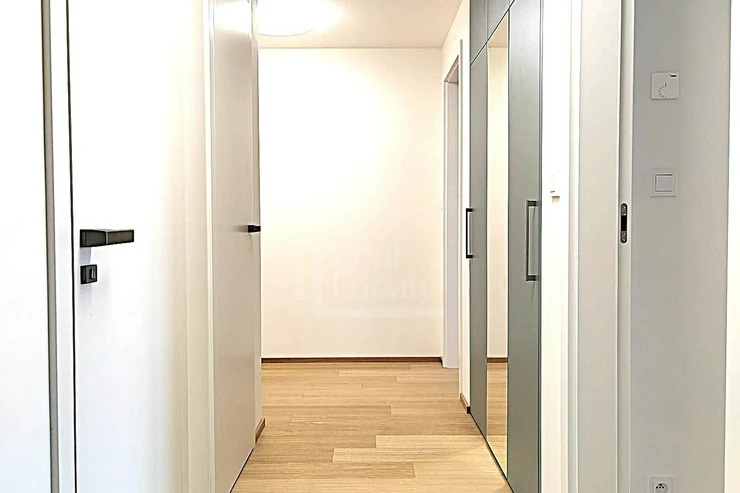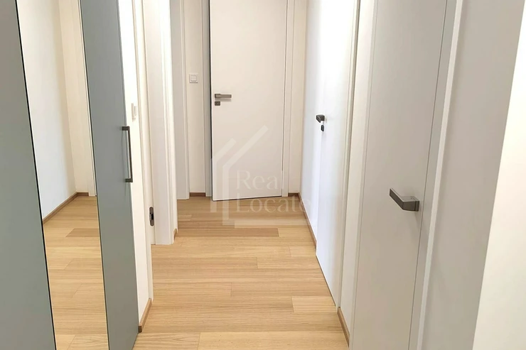 We present a modern 3-bedroom apartment (3+kk) with a floor area of 80 m² and a 9 m² balcony, located in the newly built fourth phase of the popular “Zelené město” residential project in the Prague district of Hrdlořezy. The area is surrounded by greenery – just a few steps away you will find a large park with a pond, a forest, and walking and cycling paths along the Rokytka River, perfect for relaxation or outdoor activities. Thanks to its location, the project offers peaceful living with excellent access to the city centre.