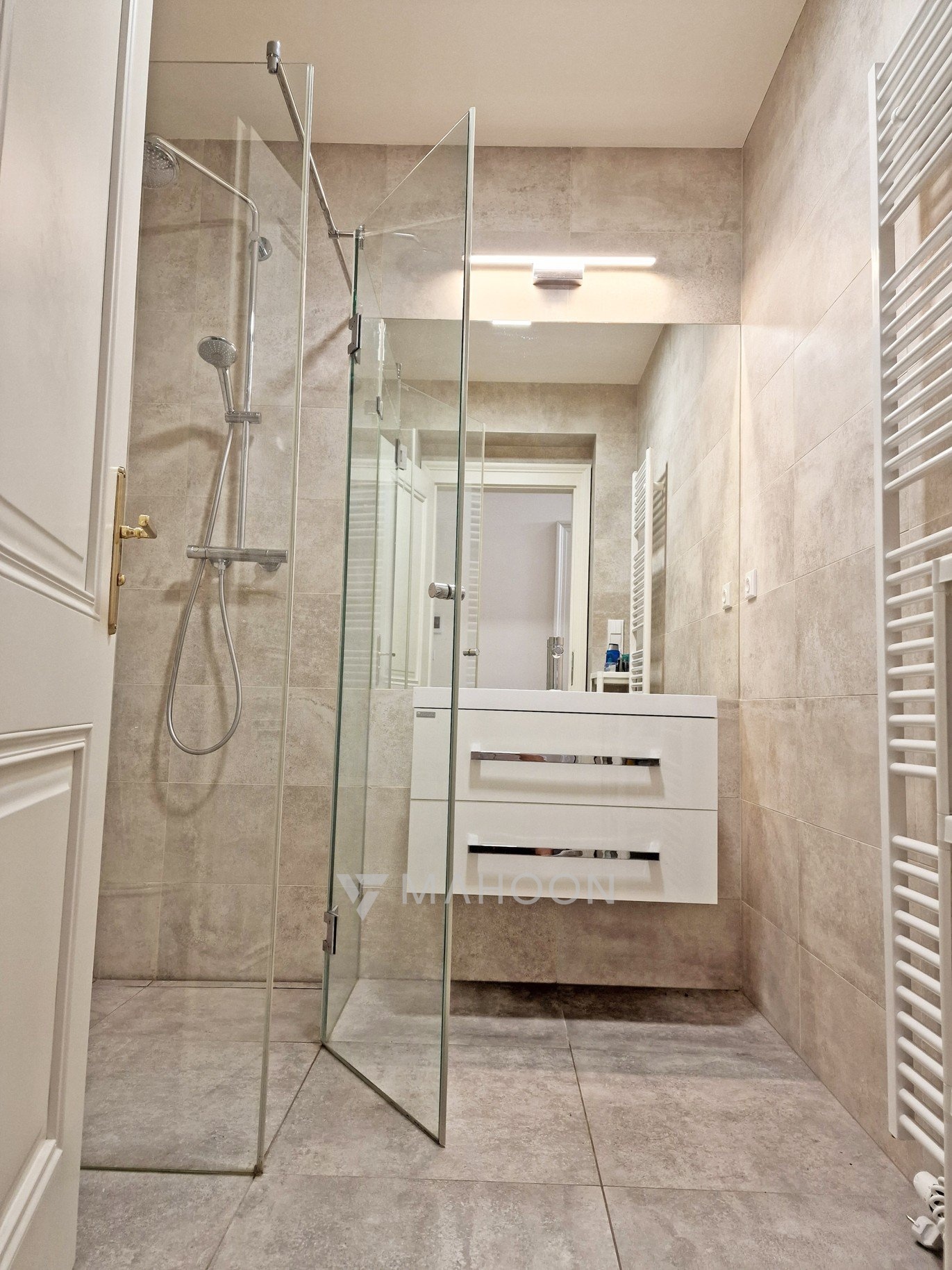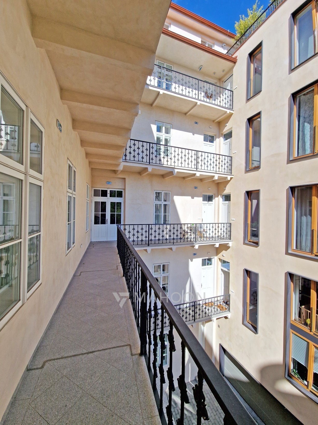A big advantage is the entrance to the apartment from a private gallery, where there is also a practical storage room.