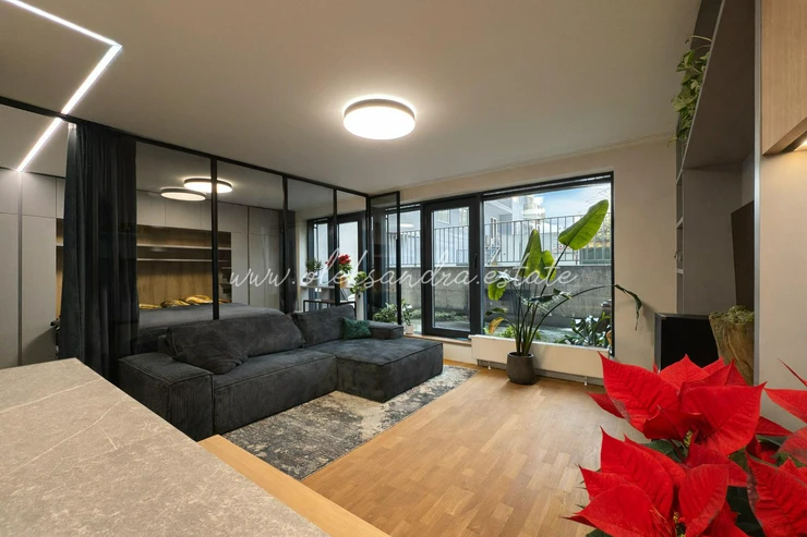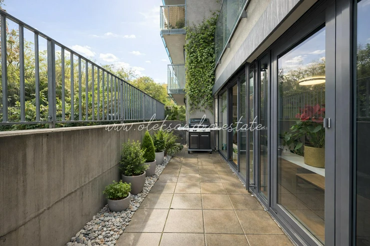 We offer for sale an exceptional 1-bedroom apartment (2+kk) with a total floor area of 54.5 m and a terrace of 15.5 m, located on the ground floor of an attractive residential building in the prestigious Karlín district. The apartment offers peace and privacy thanks to its orientation toward a green inner courtyard. It has undergone a complete and high-end renovation completed in December 2025, carried out with a strong emphasis on quality, detail, and long-term living comfort.
