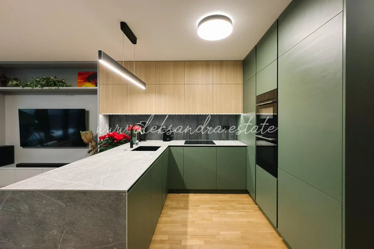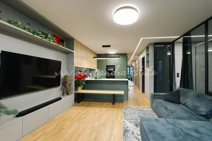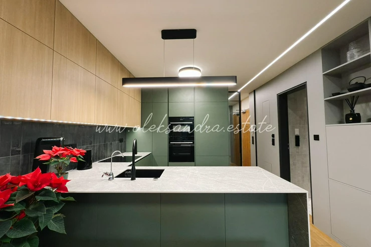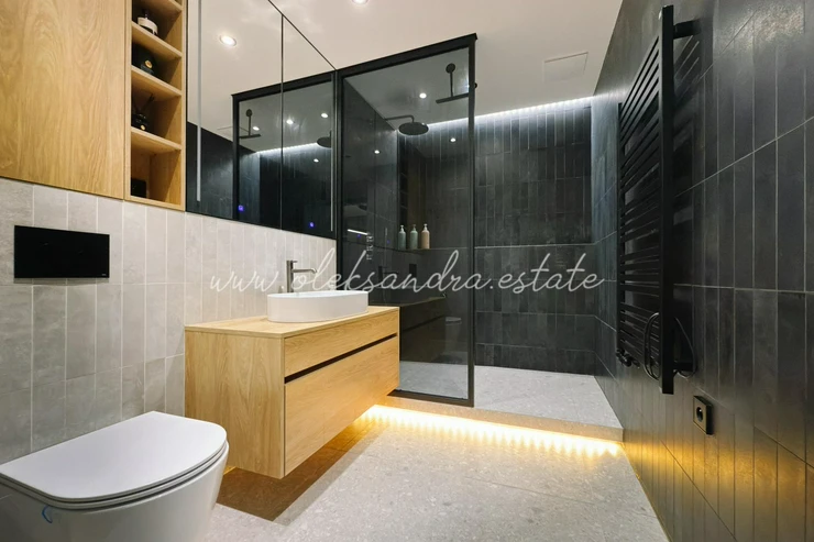 The apartment is equipped with a smart home system with full Philips Hue lighting, top-tier Bosch appliances, air conditioning with both cooling and heating functions, external electric blinds, and underfloor heating in the bathroom. Every detail has been thoughtfully designed and serves a clear purpose.