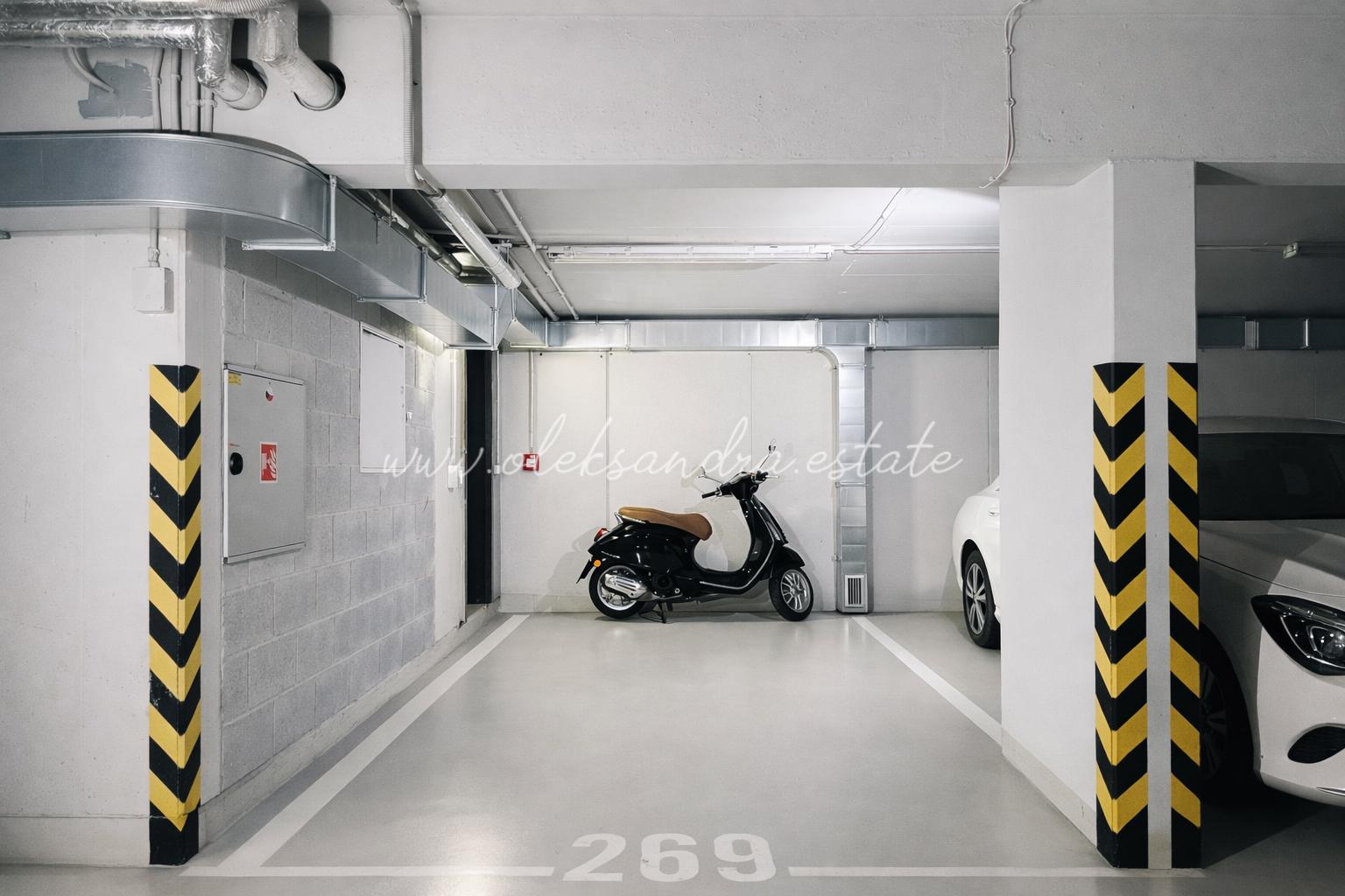 -The price includes an underground parking space (protected by a pillar against damage from neighboring vehicles) and a cellar (2.6 m)