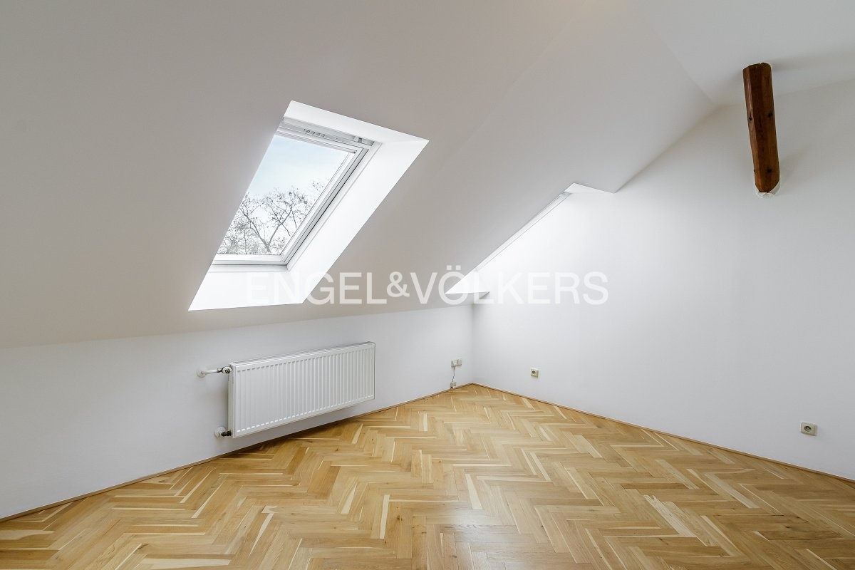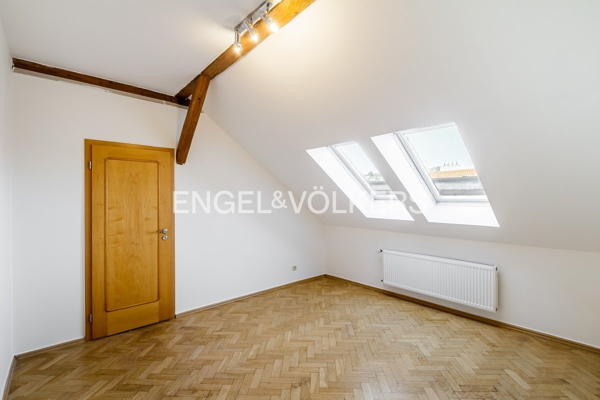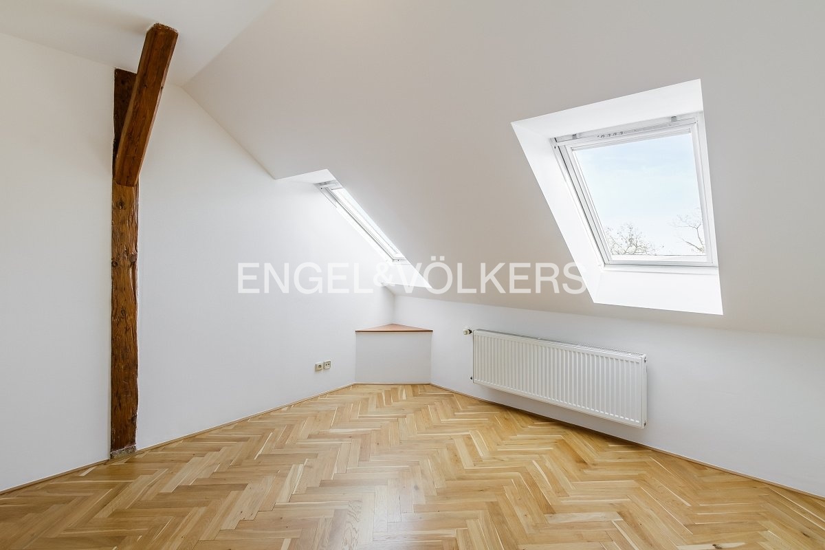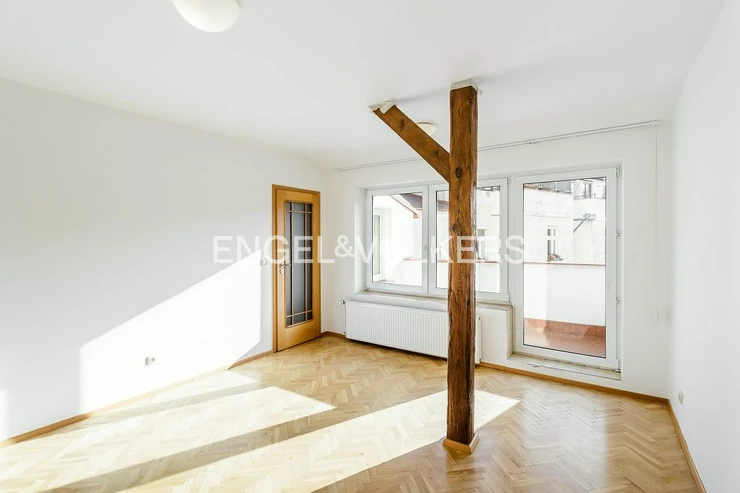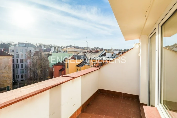 We are offering for sale a spacious and bright apartment on the 3rd floor of an apartment building on Na Skalce Street in Smíchov. Thanks to its location on the top floor, the apartment is quiet and private, while large windows facing three directions ensure plenty of natural light throughout the day.