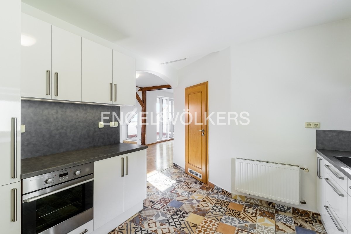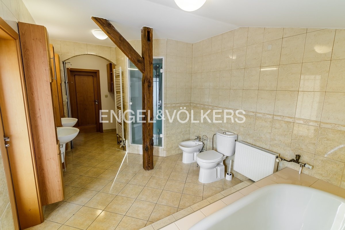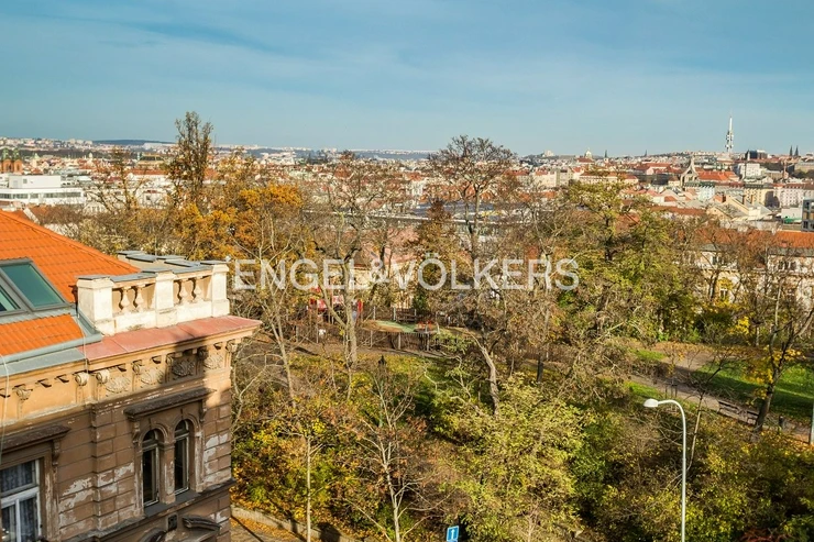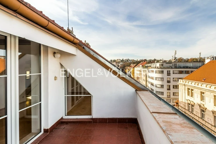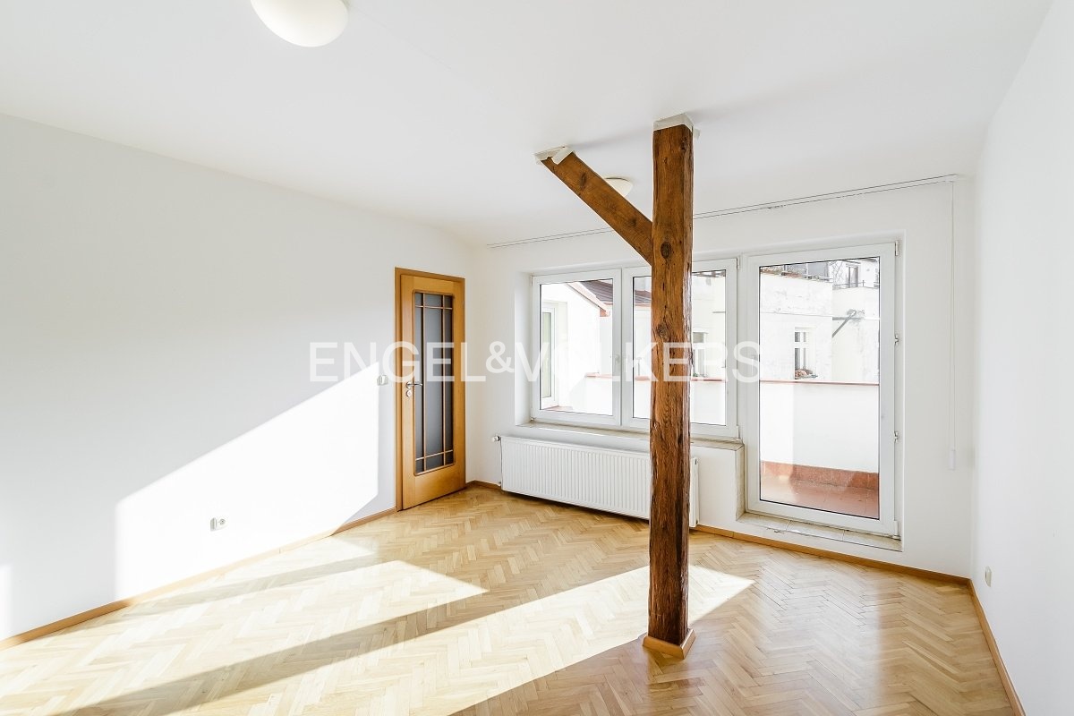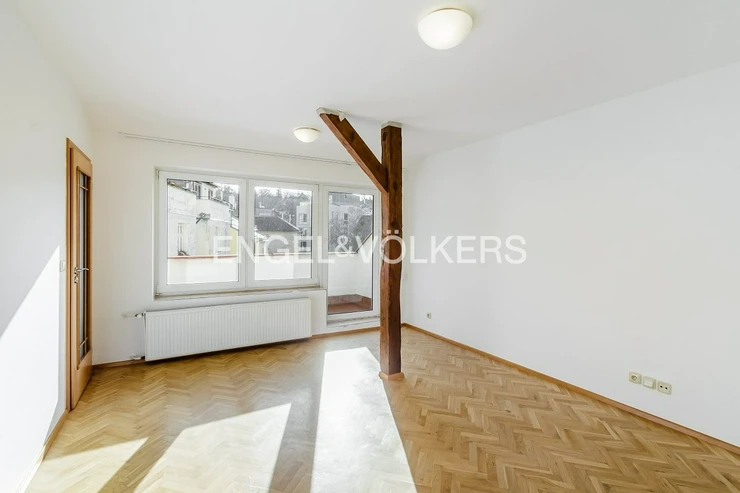 We are offering for sale a spacious and bright 6+1 apartment on the 3rd floor of an apartment building on Na Skalce Street in Smíchov. Thanks to its location on the top floor, the apartment is quiet and private, while large windows facing three directions ensure plenty of natural light throughout the day.