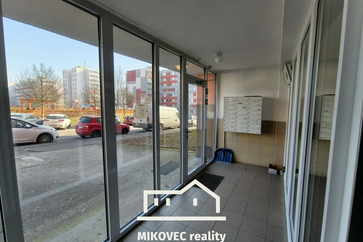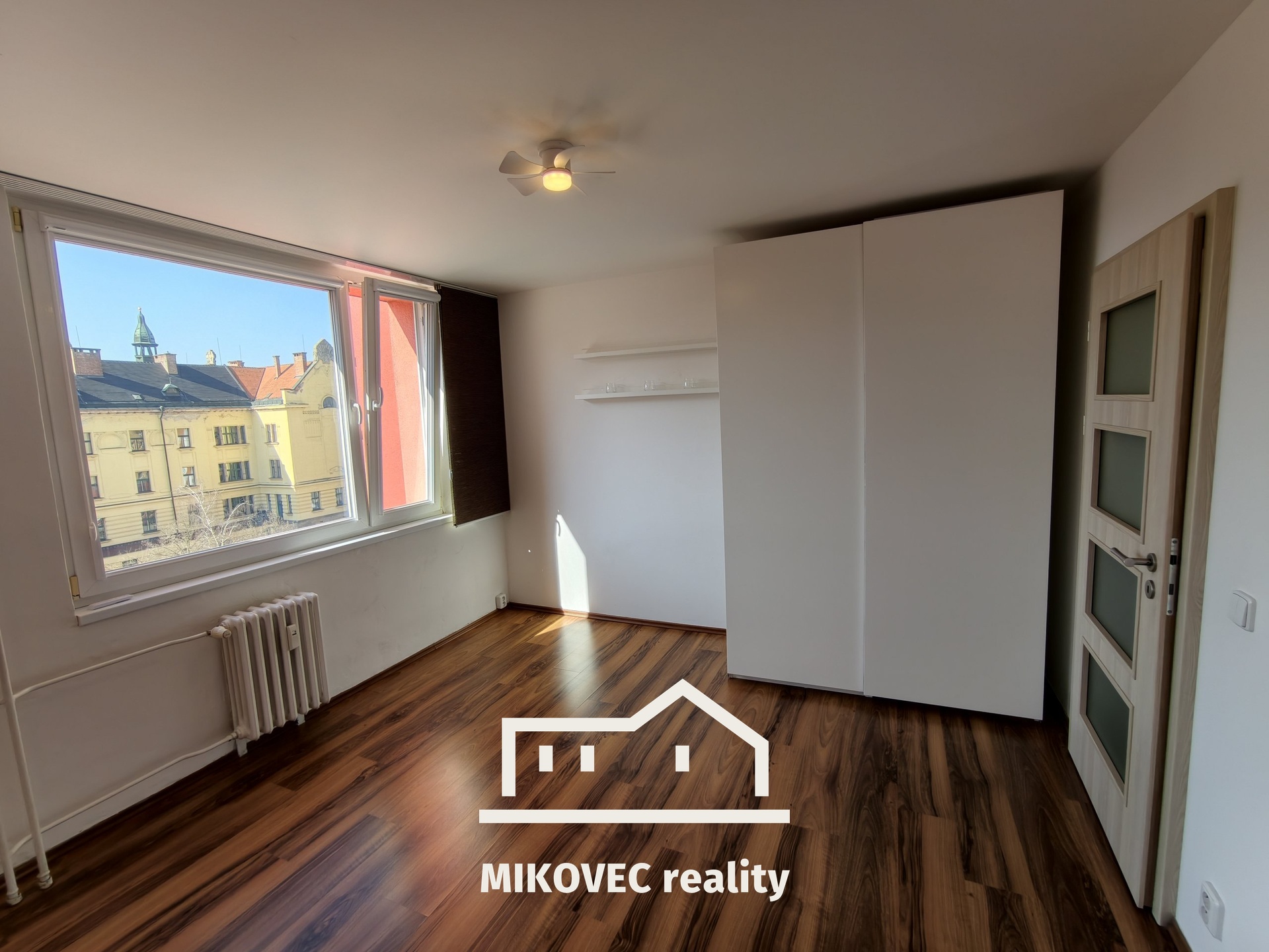 Příjemnou atmosféru obytného prostoru doplňuje hezký výhled z oken přímo na Gymnázium, posuvné panelové stínění a rolety s hliníkovou fólií pro tepelnou pohodu a úplné zatemnění. Komfort bydlení dále zvyšují dvě stropní světla s možností stmívání dálkovým ovládáním, která jsou současně doplněna o ventilátory.