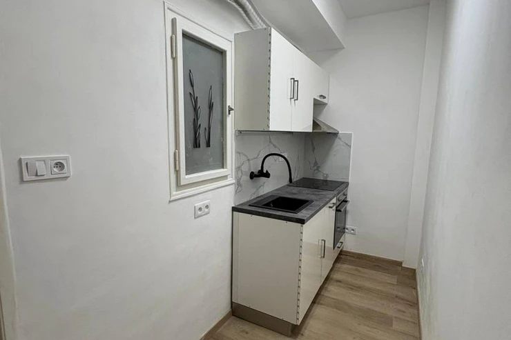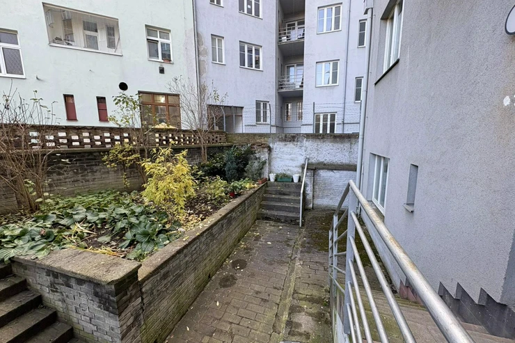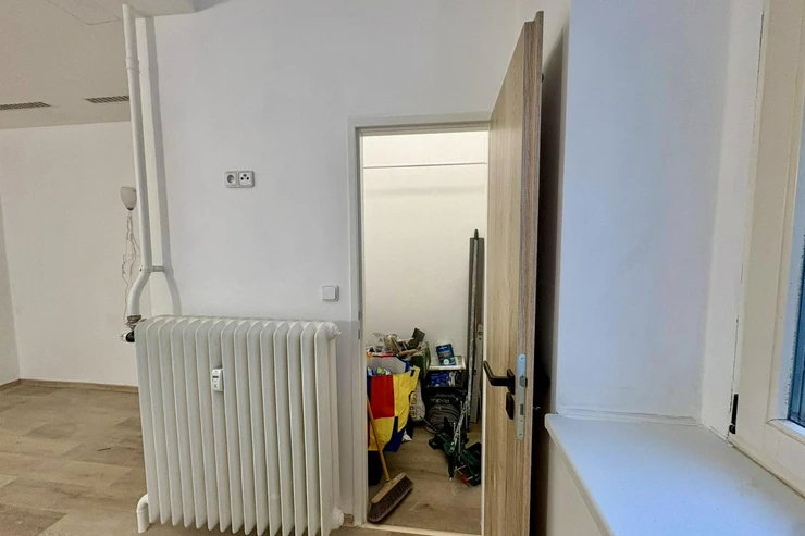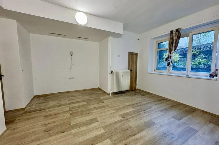 We offer for sale a bright studio / commercial unit with a layout of 1+1 and a total area of 40 m2, including a basement storage of approximately 45 m2. The property is located on the 1st floor and is oriented towards a quiet courtyard with greenery, providing privacy and minimal street noise.