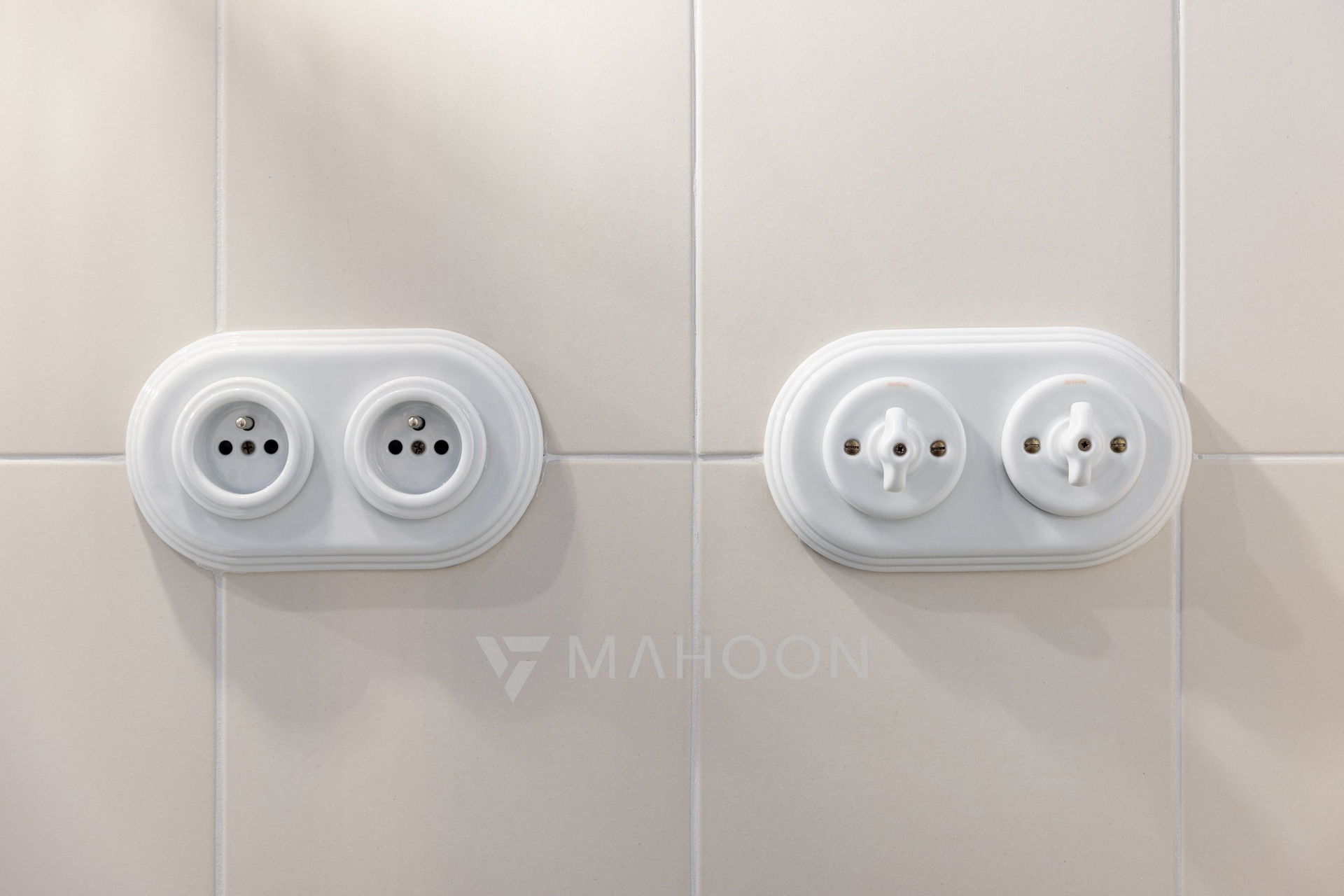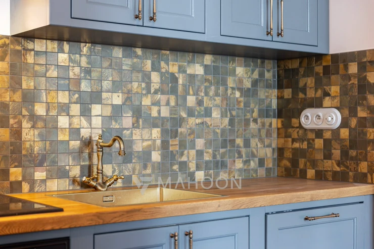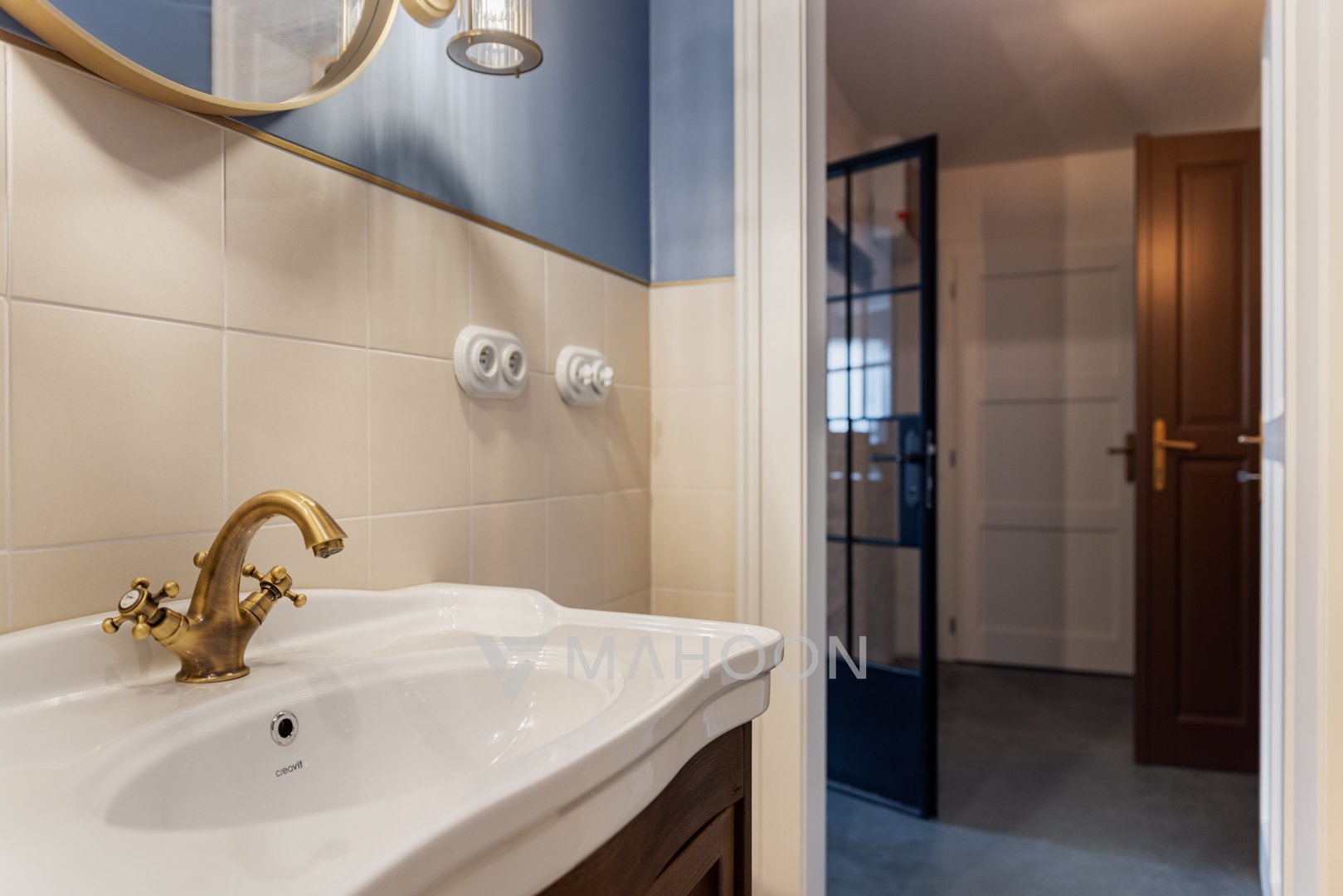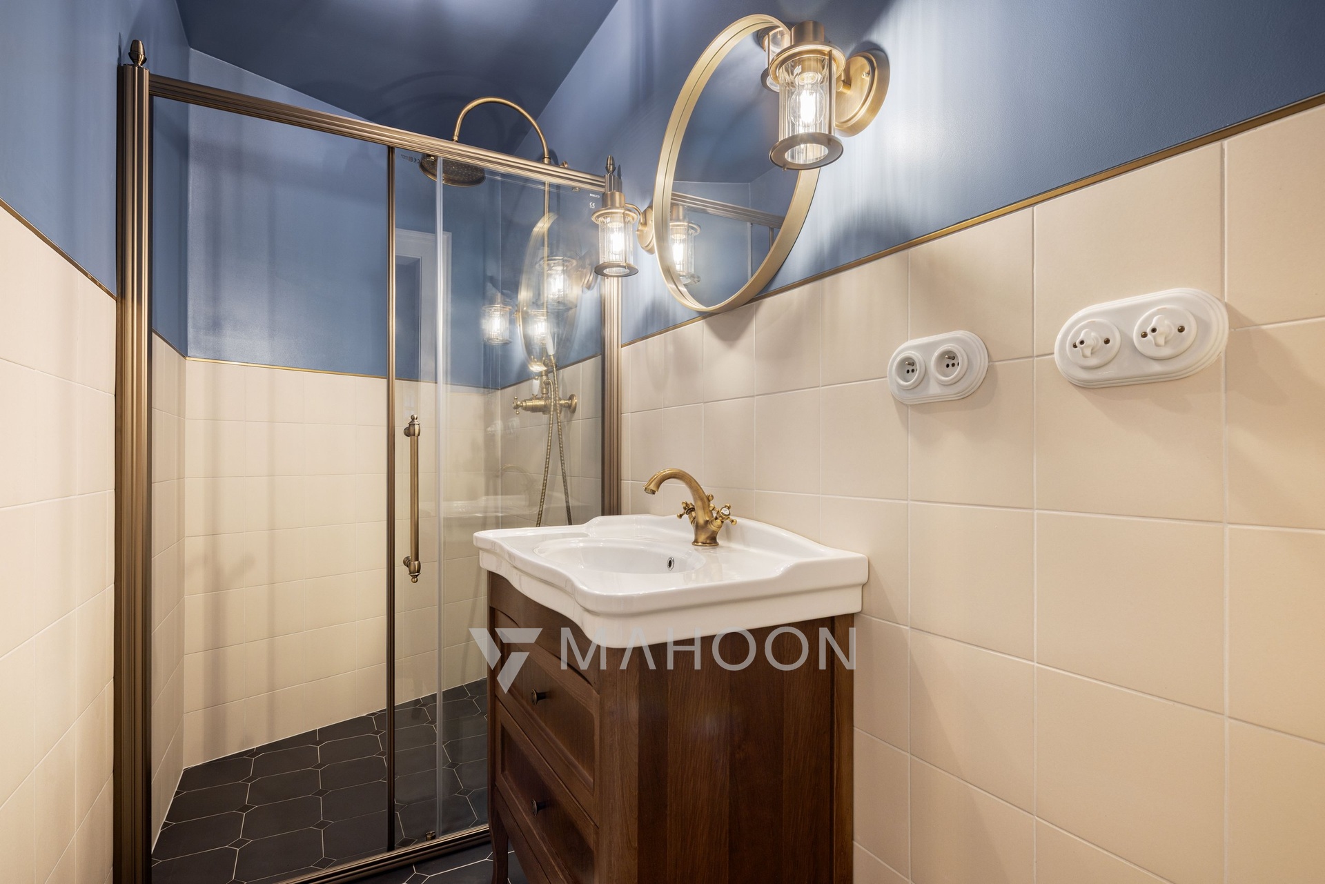 fused Italian tiles, while the sanitary ware and accessories are made of brass, all with an