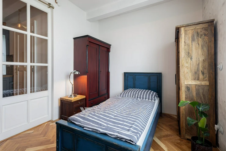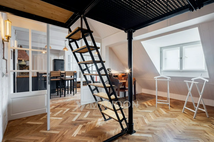 including a sleeping loft), located on the border of Prague's Vinohrady and Strašnice districts.