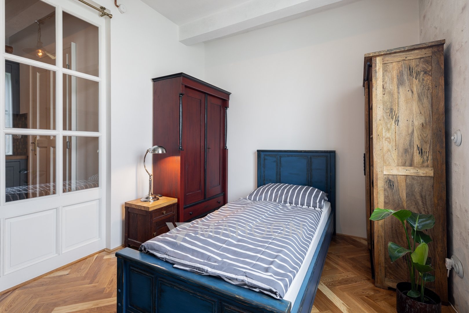 parquet flooring, porcelain sockets, top-quality historic furniture, original textures