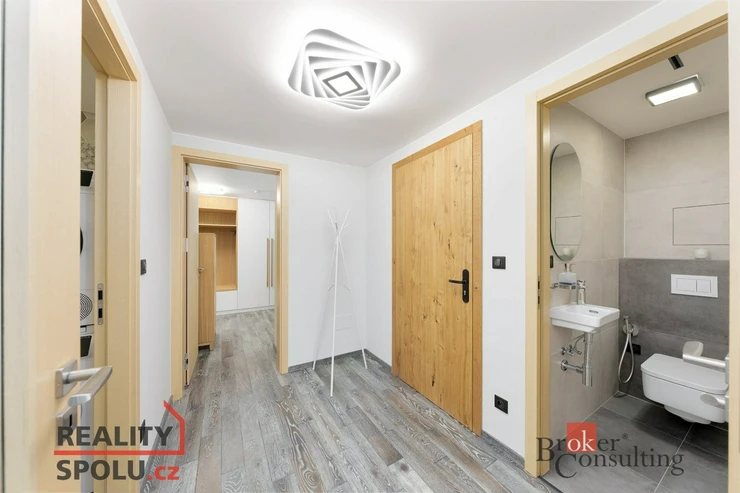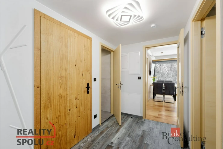 Dispozice 4kk nabízí 100 m² promyšleného prostoru + 2 balkony. Možnost použít odděleně jako 3kk a 1kk s vlastním vchodem, kuchyňskou linkou, koupelnou a toaletou. Vhodné pro krátkodobé pronájmy. Kompletně luxusně vybaveno do posledního detailu. Podlahové vytápění, předokenní žaluzie, dřevěné podlahy (bahenní dub), vestavné skříně v dýze a plně zařízené koupelny s pračkou i sušičkou vytvářejí komfort, který oceníte v každém ročním období.