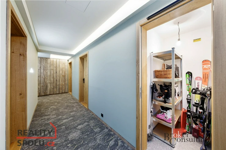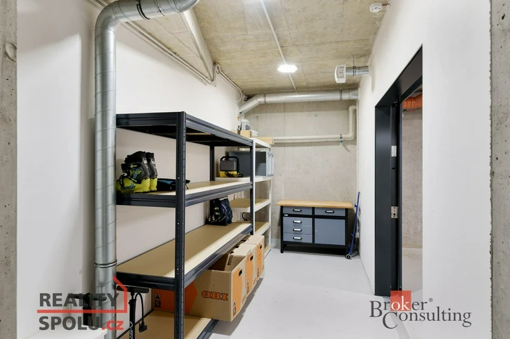 Zastřešené balkony o celkové velikosti 29 m² otevírají nádherné výhledy a přirozeně se stávají místem pro klidná rána i dlouhé večery. Parkování v podzemních garážích (2místa) podtrhuje bezstarostnost celého řešení. Navíc nadstandardně velký zamykatelný sklad hned vedle parkovacího místa. Na patře se nachází komora pro uložení sportovního vybavení.