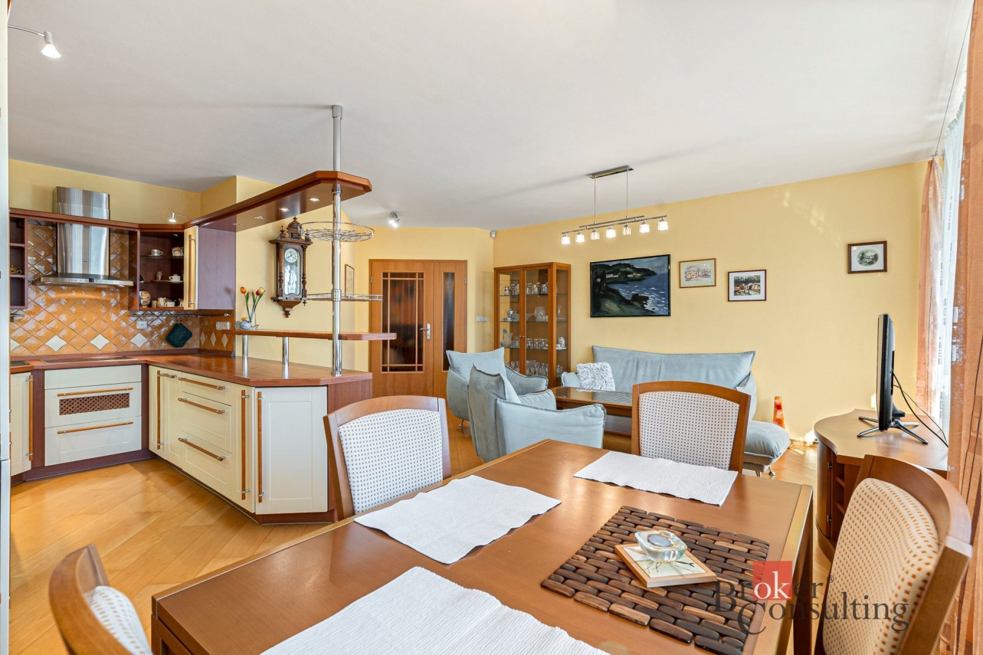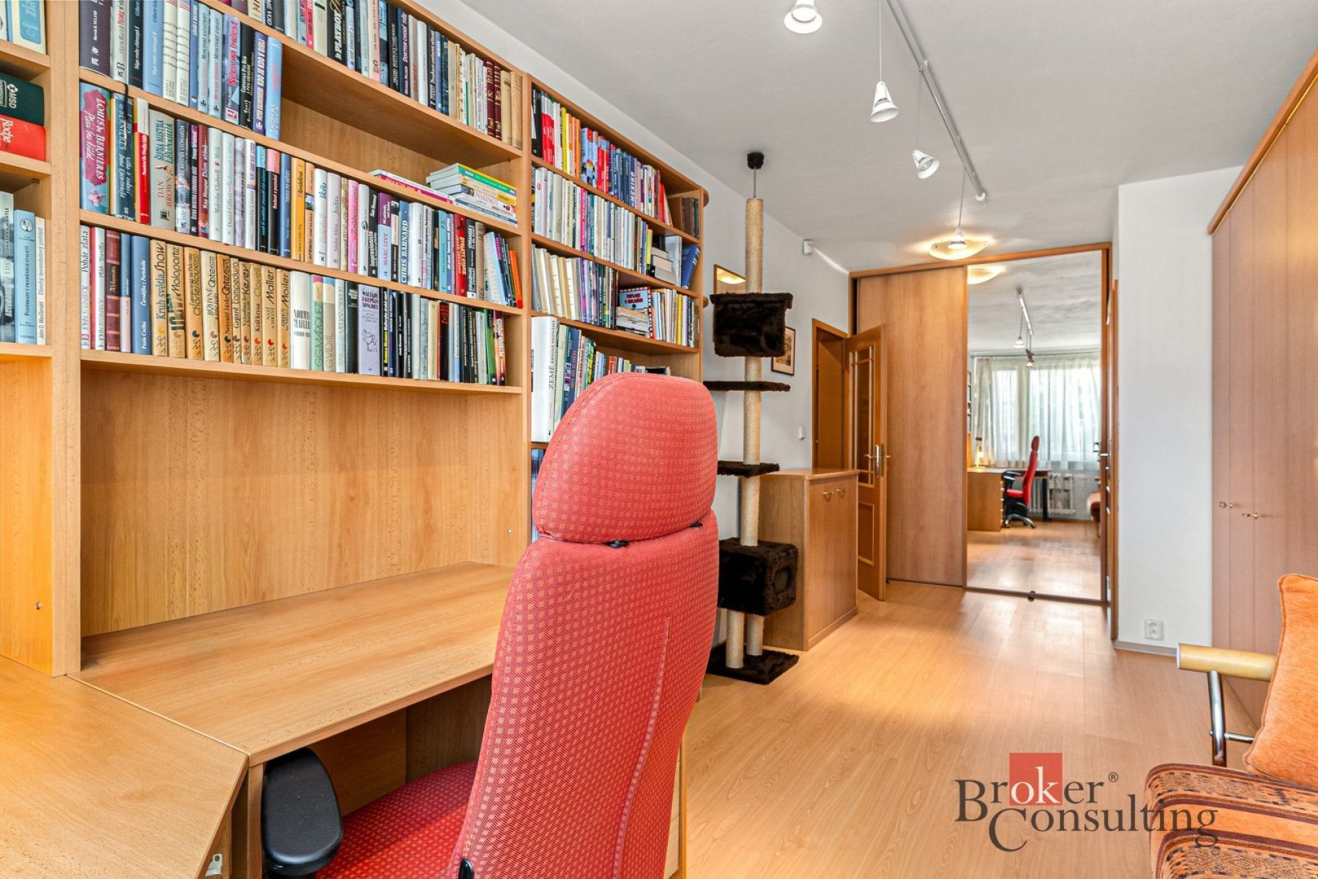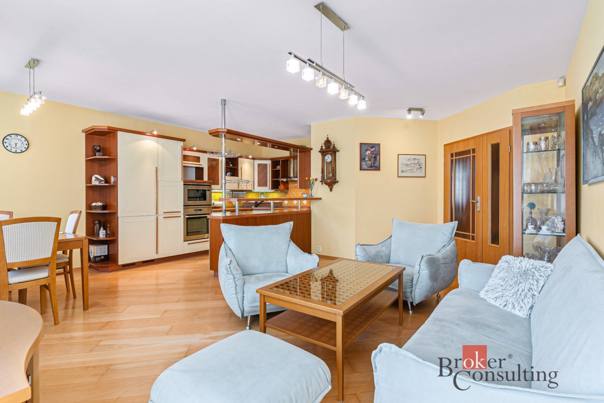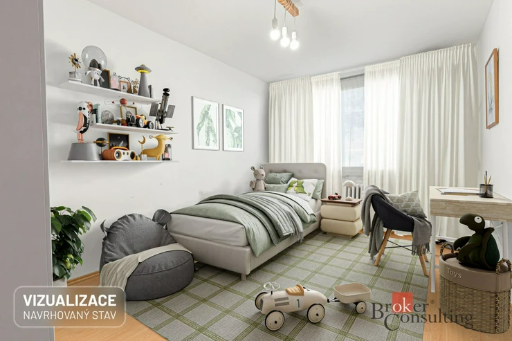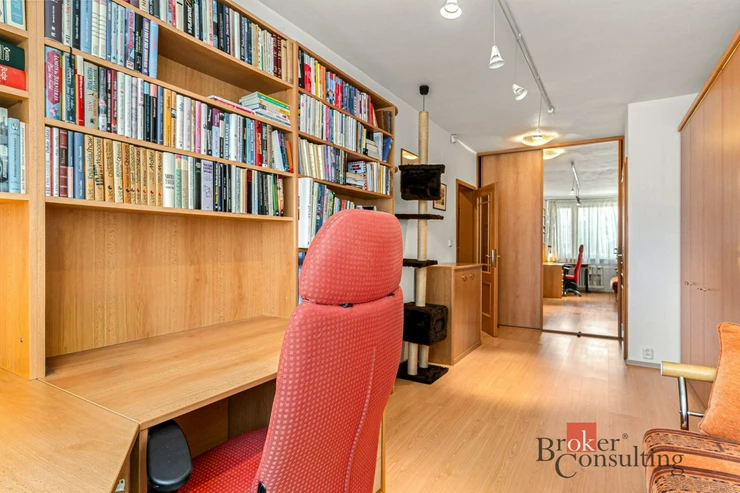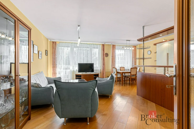 Byt je situován v udržovaném bytovém domě a nabízí prostorné a světlé uspořádání 4+kk, ideální pro rodinu nebo pro ty, kteří hledají dostatek prostoru pro práci z domova. Dispozice zahrnuje vzdušný obývací pokoj s kuchyňským koutem, tři samostatné pokoje, koupelnu, samostatné WC a dostatek úložných prostor. Dispozice byla upravena při rekonstrukci architektem a maximálně využívá prostor bytu k praktickému fungování s dostatkem soukromí pro všechny členy domácnosti.