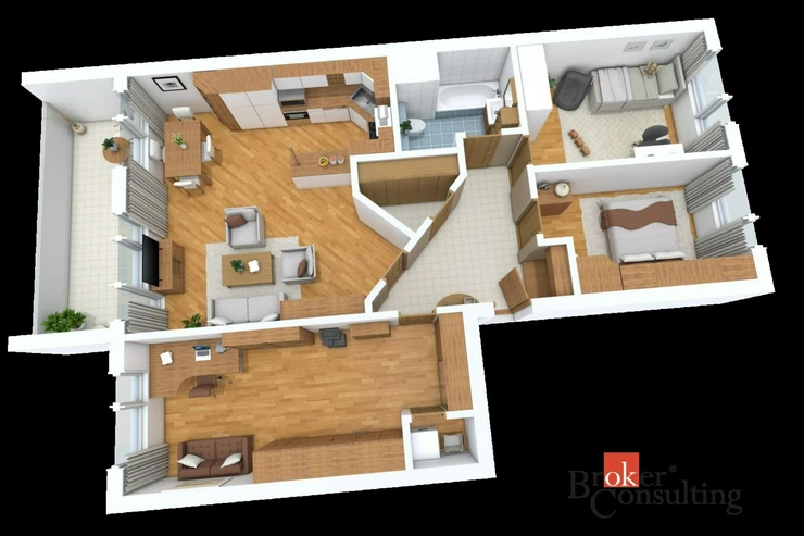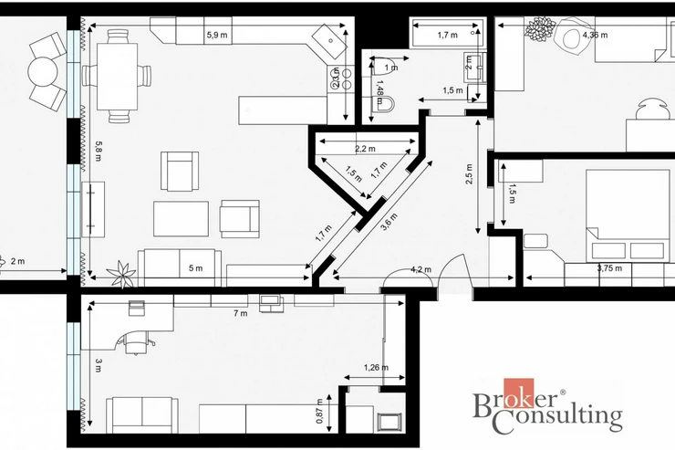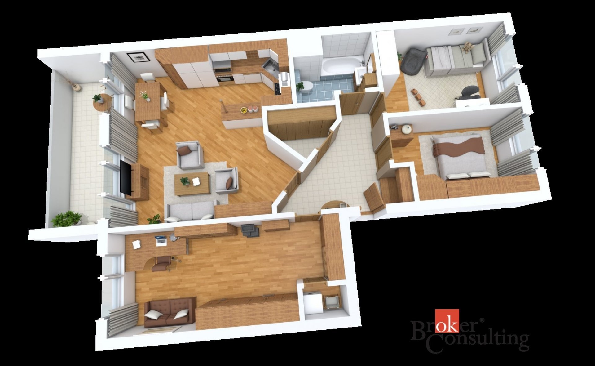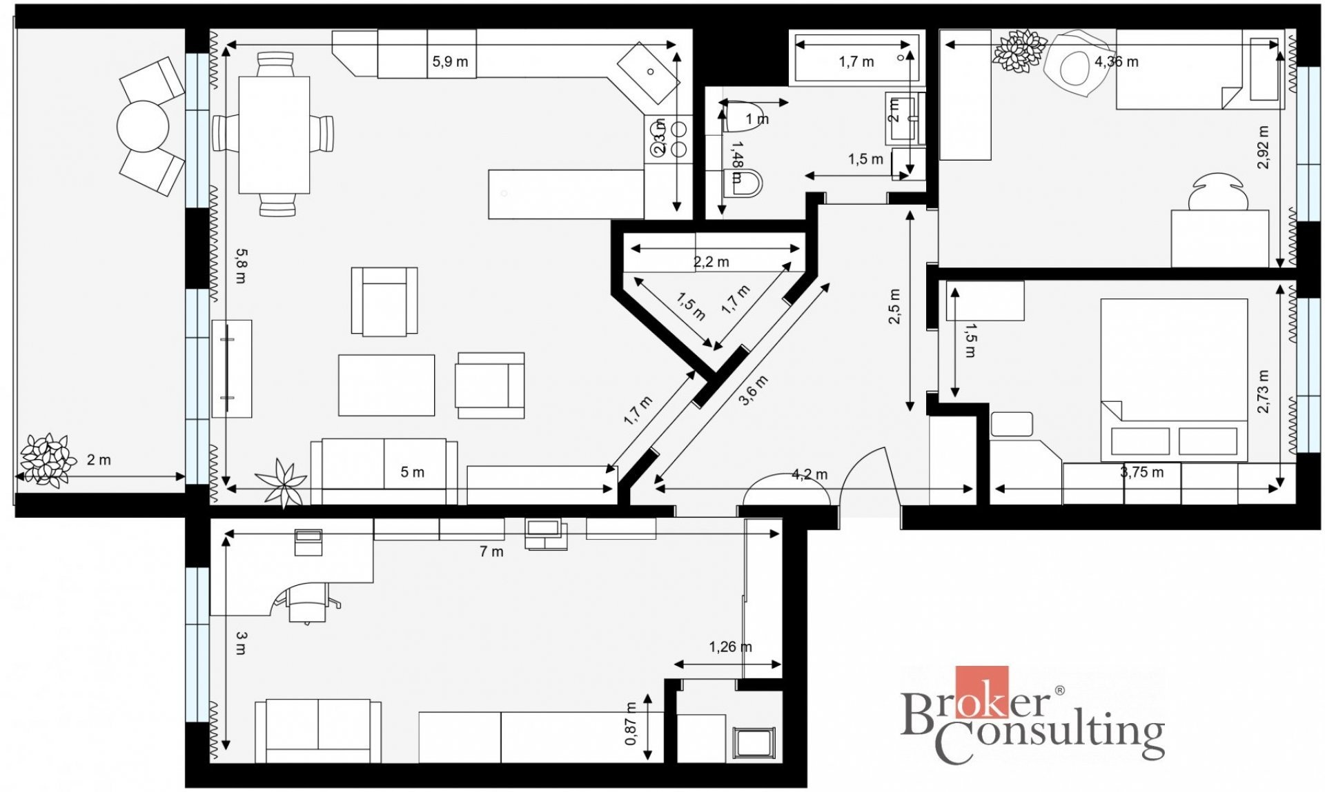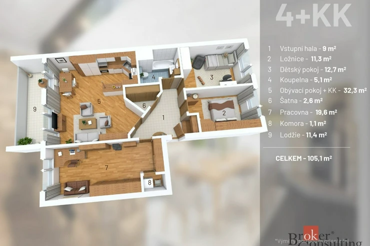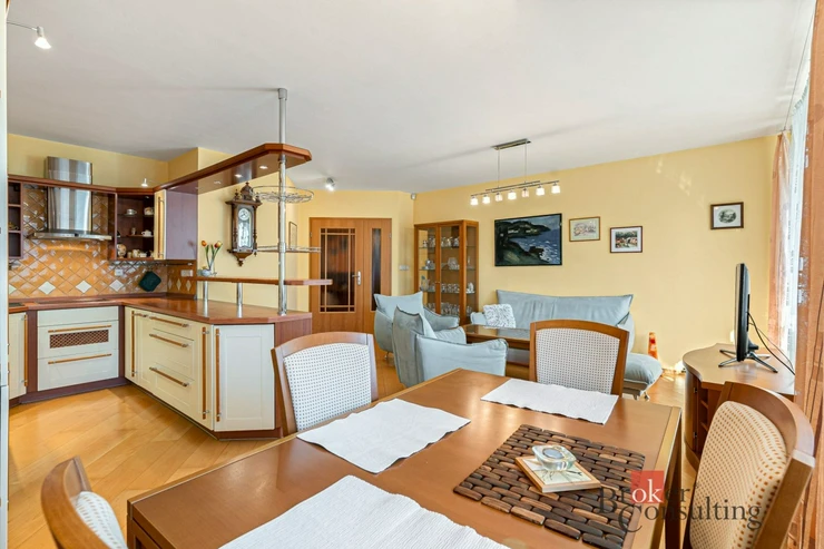 Byt je situován v udržovaném bytovém domě a nabízí prostorné a světlé uspořádání 4+kk, ideální pro rodinu nebo pro ty, kteří hledají dostatek prostoru pro práci z domova. Dispozice zahrnuje vzdušný obývací pokoj s kuchyňským koutem, tři samostatné pokoje, koupelnu, samostatné WC a dostatek úložných prostor. Dispozice byla upravena při rekonstrukci architektem a maximálně využívá prostor bytu k praktickému fungování s dostatkem soukromí pro všechny členy domácnosti.
