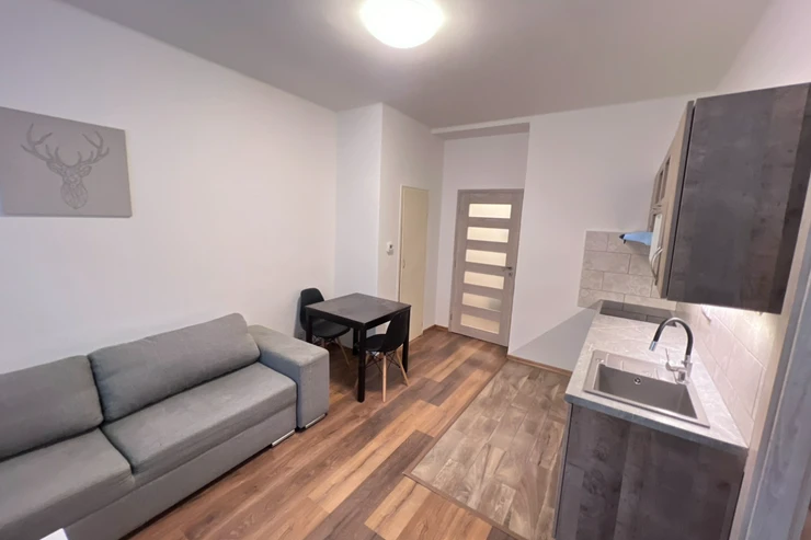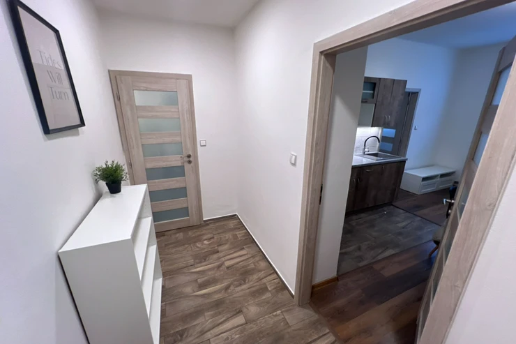 We offer for sale a bright and practical 1-bedroom apartment (2+kk) with a total area of 45 m² (42 m² apartment + 3 m² basement storage), located on the 1st floor of a brick building in a quiet area on Žižkova Street in Náchod.