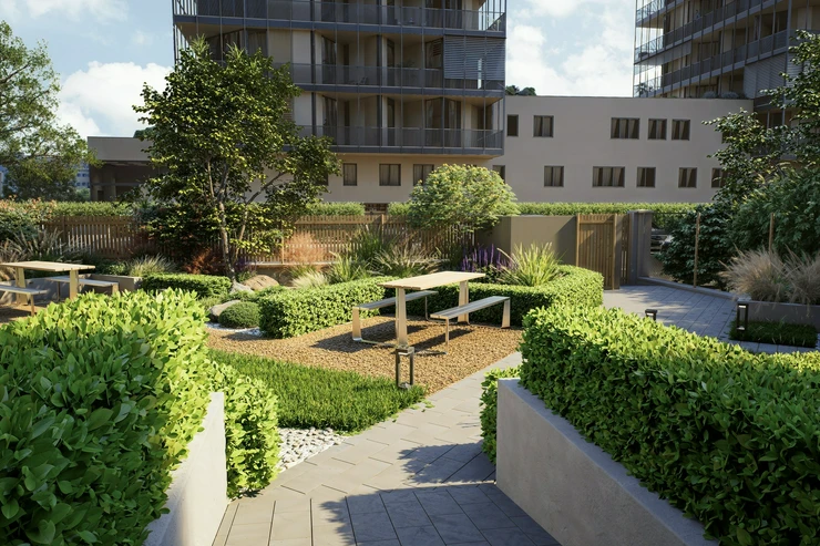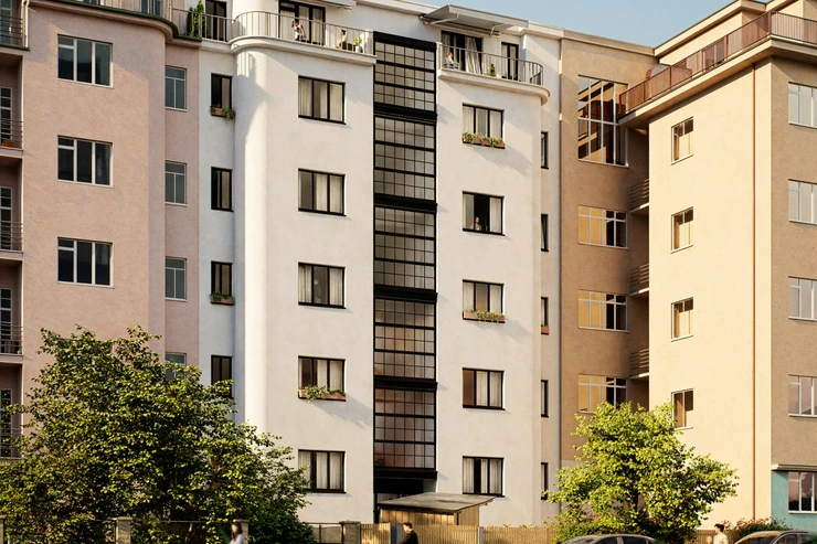 The fully renovated building features a peaceful inner courtyard with greenery and comfortable seating, a laundry room, and a small fitness area. The modernized common areas offer a contemporary living environment that meets today’s housing standards. Situated in a well-established part of Žižkov, the Želivského 3 project is just steps from the Nákladové nádraží Žižkov tram stop. Residents enjoy easy access to city life, including popular cafés, restaurants, shops, services, and the nearby Parukářka and Vítkov parks. The Želivského metro station is only minutes away, with the city center reachable in approximately ten minutes.