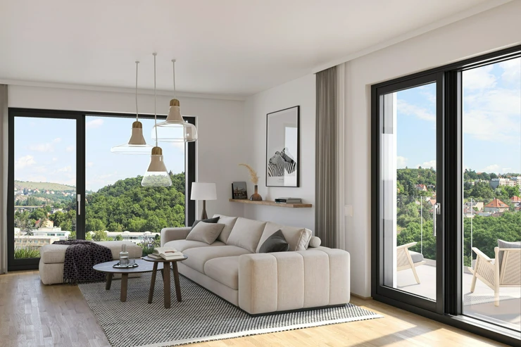 Modřany is one of the most interesting parts of Prague today. Here the energy of the city meets the greenery of nature. The Belárie forest district begins right behind the building, and nearby you will also find the Archbishop's Vineyard, the vast Hodkovičky forest park, and the cycle path along the Vltava River. If a quicker city pace is needed, the center is easily reachable. Modřany is a place where you can live an active, happy, and peaceful life.