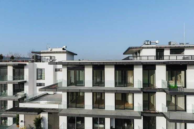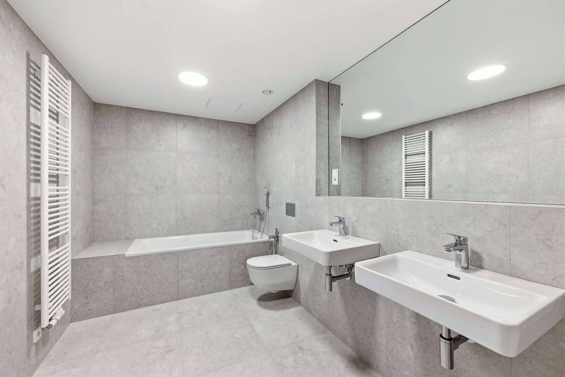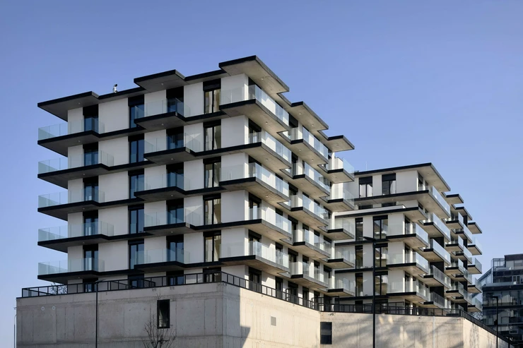 The layout includes a large living room with preparation for a kitchen, three separate bedrooms, a practical storage room, a bathroom, a separate WC, and an entrance hall. The unit also includes a spacious balcony with an area of 19.3 m². The apartment is finished in a fit-out standard - with finished floors, sanitary facilities and preparation for a kitchen, so you can fine-tune the interior exactly to your style. The Ahoj, Vanguard project offers elements that take living to a new level: sliding large-format windows, underfloor heating, recuperation, and cooling and energy-saving technologies in the form of heat pumps and photovoltaics. Furthermore, the building boasts an impressive roof terrace with panoramic views of the city - the perfect place for relaxation and inspiration.