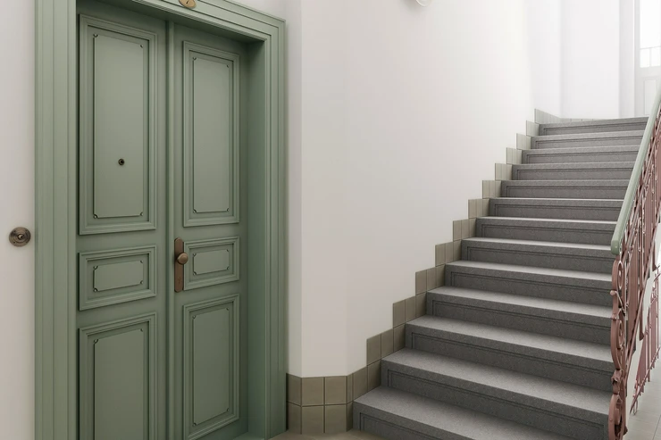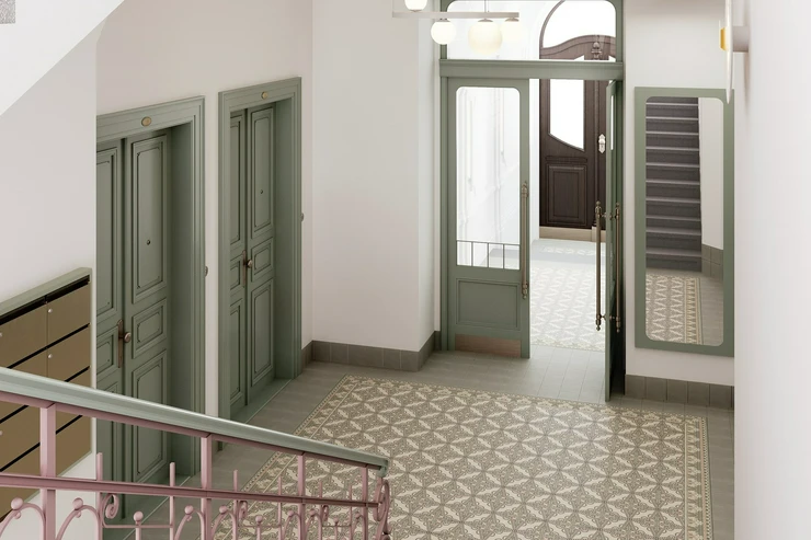 The building will be completely renovated. There will be representative common areas, a modern elevator, a renovated stone staircase with a decorative railing, and new technical facilities. Residents will have access to a sauna, fitness room, bicycle room and stroller room, and a quiet place to sit amongst the greenery in the courtyard. The building is situated on a quiet part of Bělehradská Street, just a few steps from the Nuselské schody tram stop. Popular restaurants such as Solo Bakery, Ô-mai coffee, Las Adelitas, and Da Pietro pizzeria are nearby, and Folimanka and Grébovka parks are also within walking distance. There are pharmacies, schools, fitness centers, and common services in the neighborhood. You can reach the I. P. Pavlova metro station by tram in four minutes, and the city center in ten.