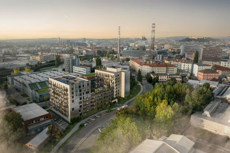 Brno Jedna, or Brno One, is more than just a residential building, it is a place where you will live well. The building boasts a roof terrace with a grill, a workout zone, a bike room, a laundry room, and a stroller room - all of which will offer you the comfort of urban life. A new district with a park, bike paths, and services is developing nearby. The city center is within reach in just 5 minutes by public transport or by car.